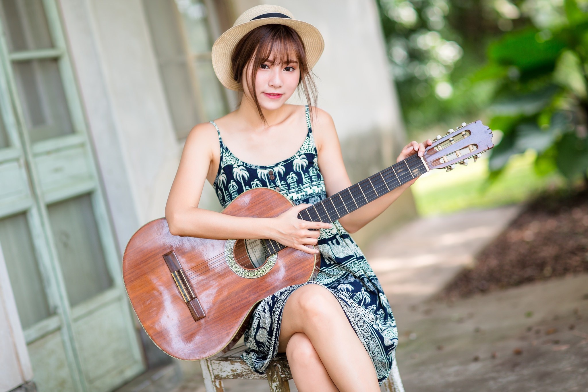 Обои красота, гитара, нога, платье, леди, фото, заставка