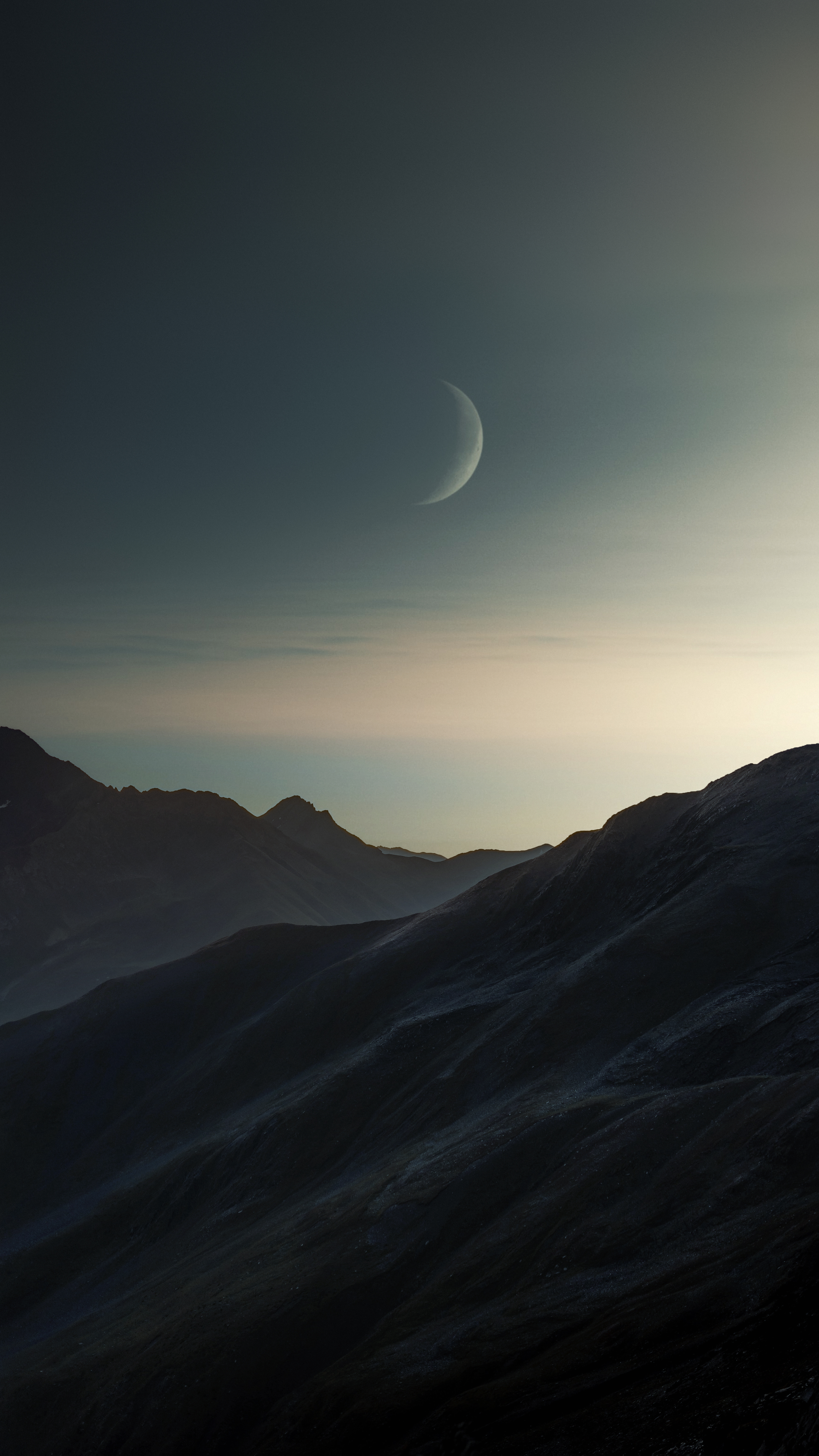 Обои атмосфера, облако, луна, гора, солнечный свет, фото, заставка