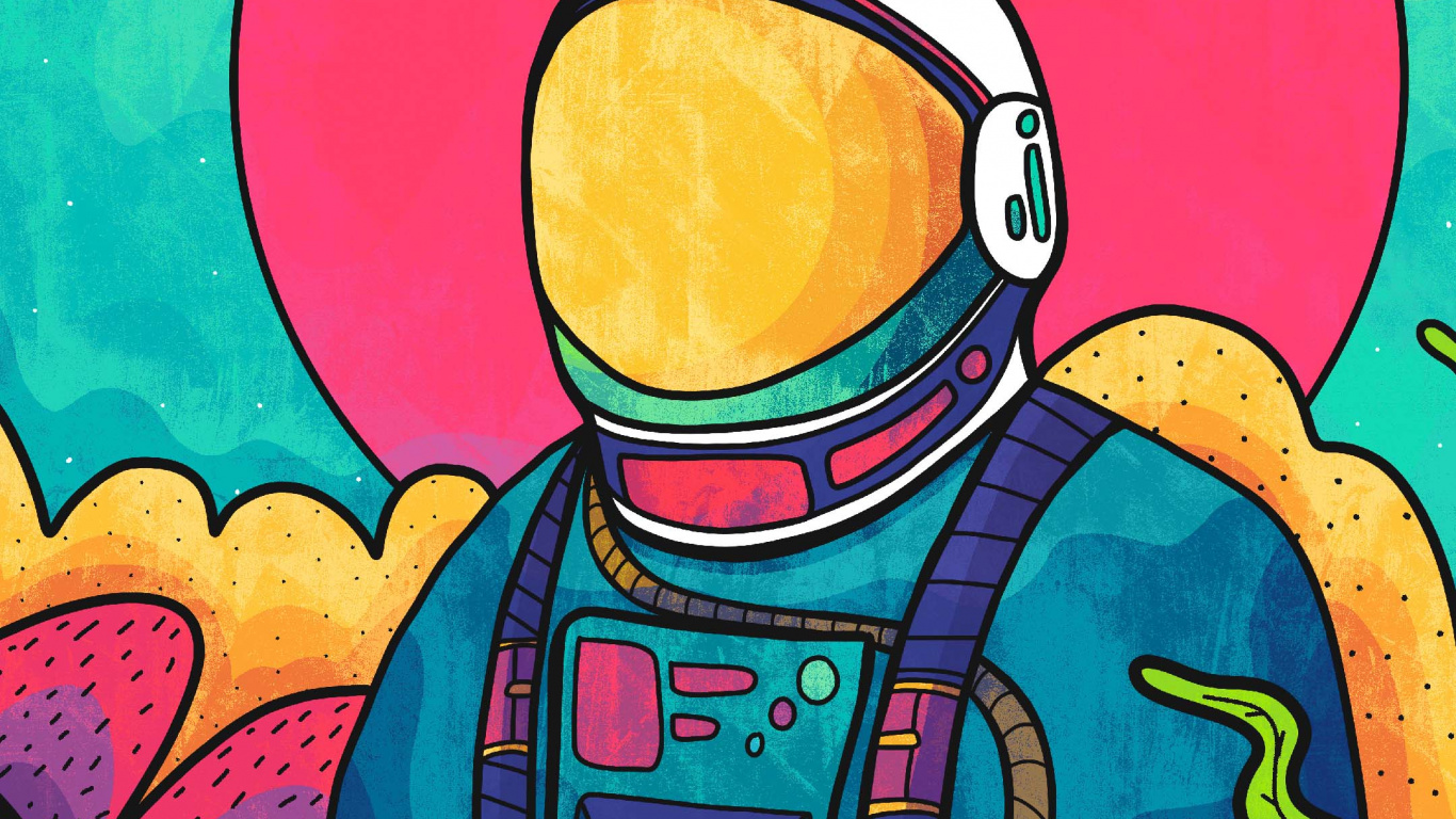 Обои 1366x768 астронавт, постер, мультфильм, арт, дизайн, HD ready картинка