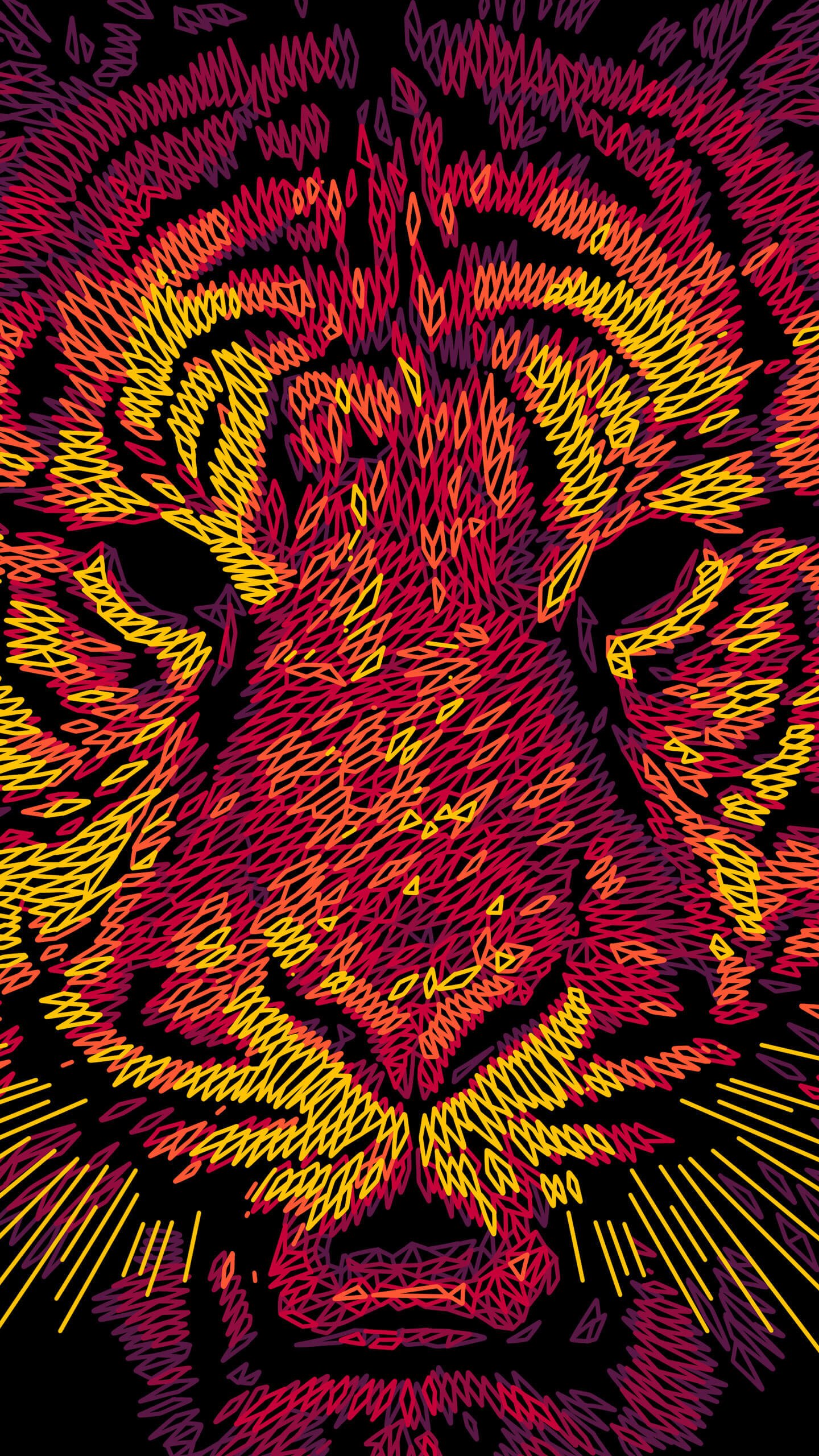 Обои тигр, узор, арт, кошачьих, морда, фото, заставка