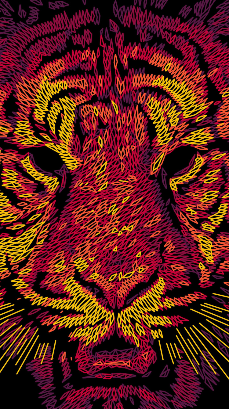 Обои тигр, узор, арт, кошачьих, морда для iPhone 6, 6S, 7, 8, заставка, 750x1334 картинка