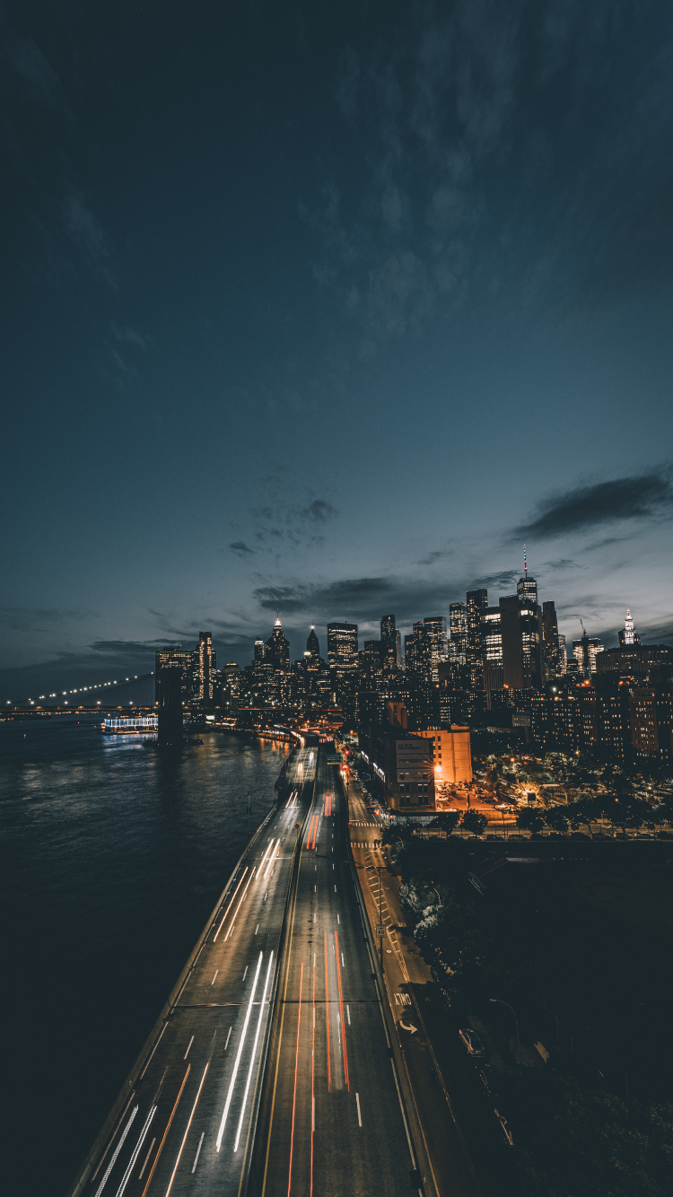 Обои ночь, город, облако, вода, здание для iPhone 6, 6S, 7, 8, заставка, 750x1334 картинка