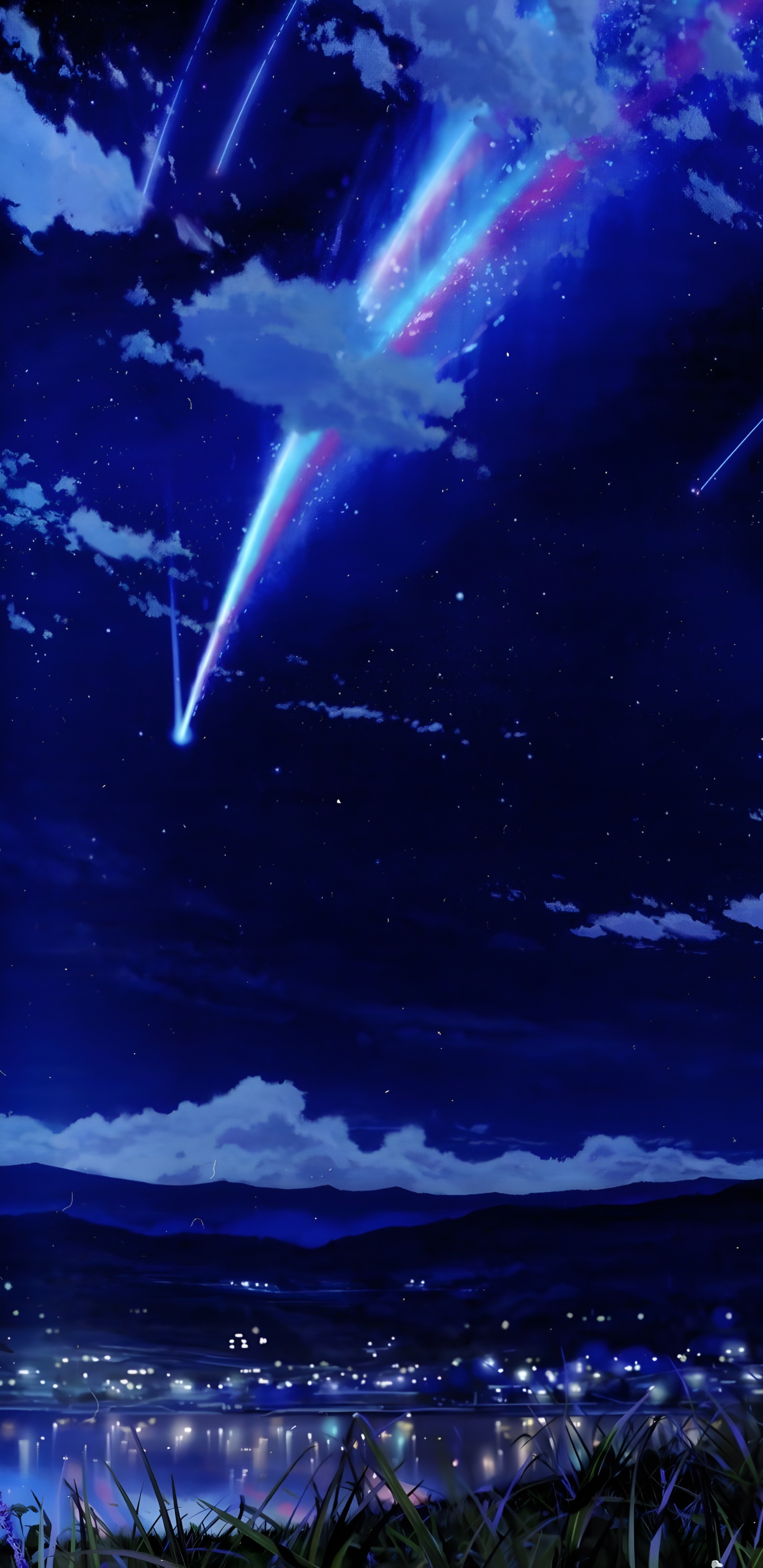 Обои аниме, атмосфера, синий, свет, астрономический объект для Samsung Galaxy S8/S8+/S9/S9+/Note 8/Note 9 QHD, заставка, 1440x2960 картинка