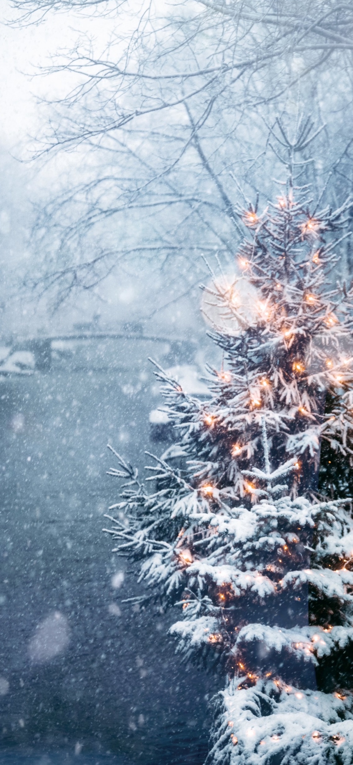 Обои Новый год, Рождество, смартфон, елка, растение для iPhone X / XS, заставка, 1125x2436 картинка
