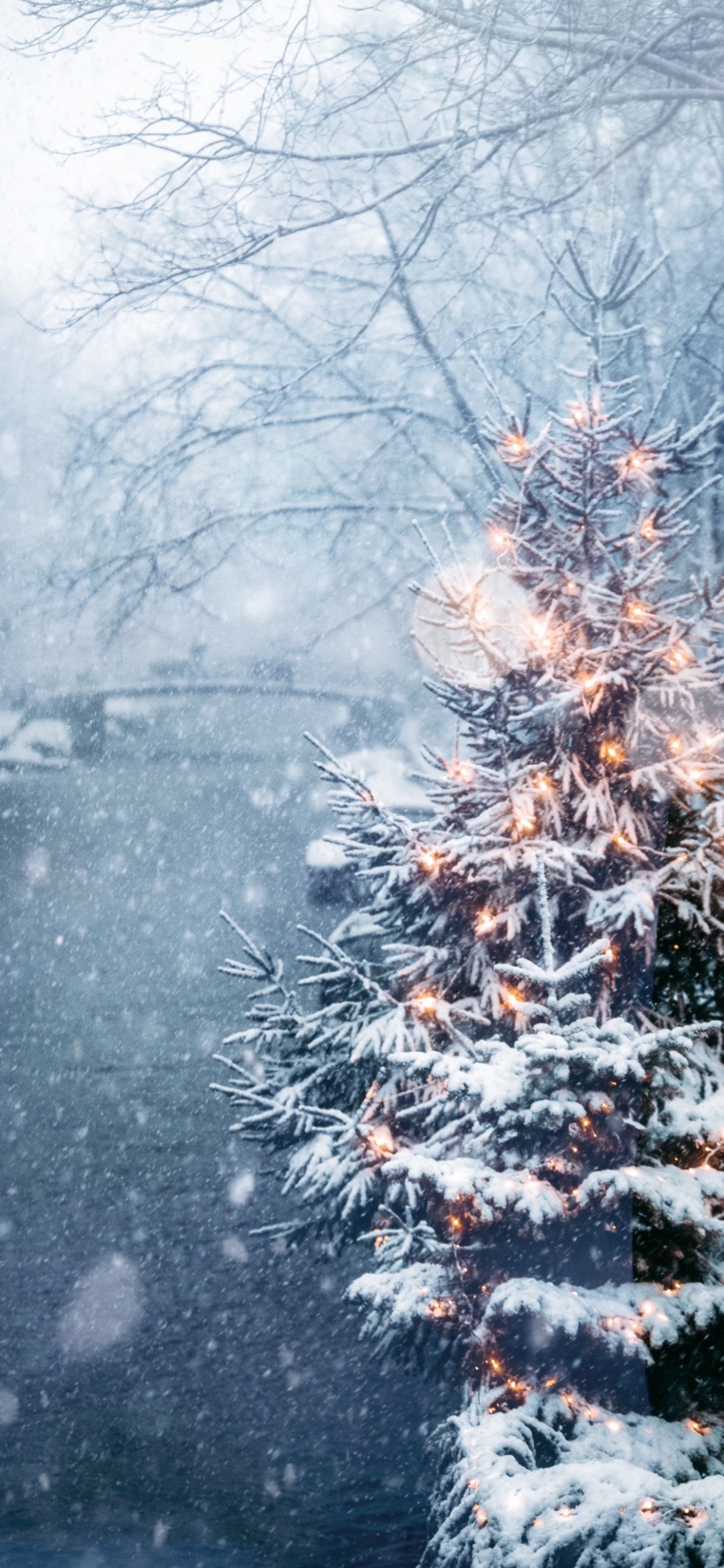 Обои Новый год, Рождество, смартфон, елка, растение для iPhone XS Max, заставка, 1242x2688 картинка