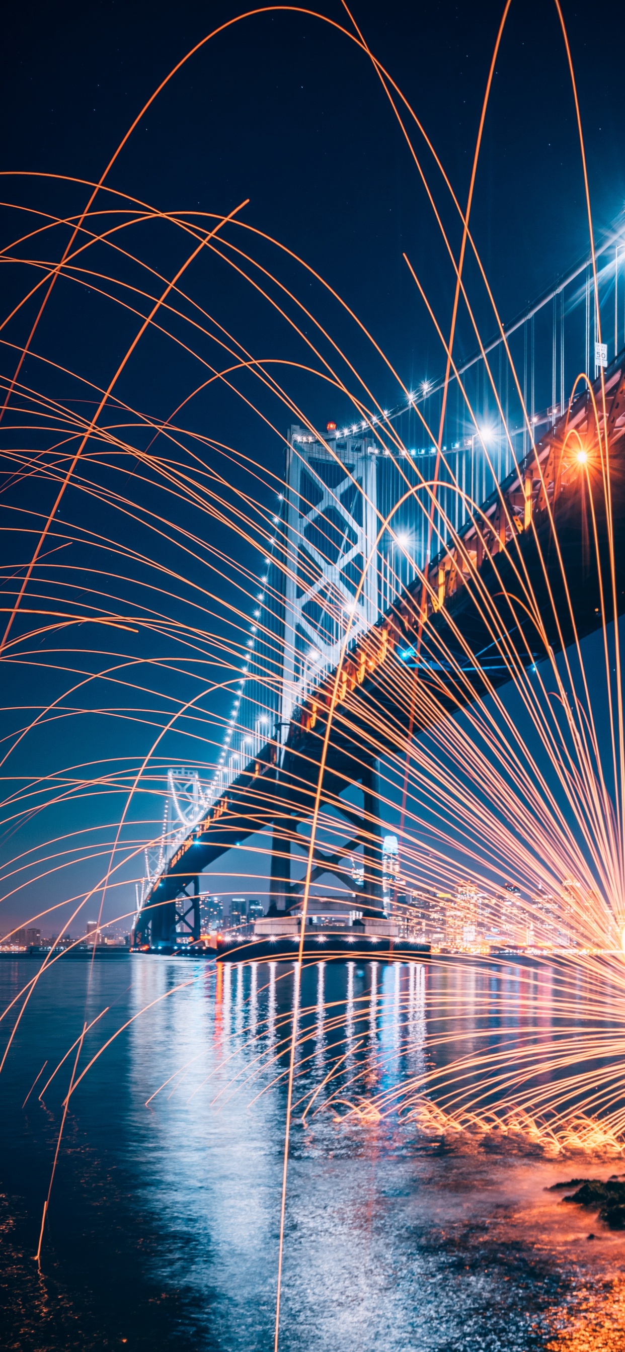 Обои арт, вода, свет, электричество, уличный фонарь для iPhone XS Max, заставка, 1242x2688 картинка