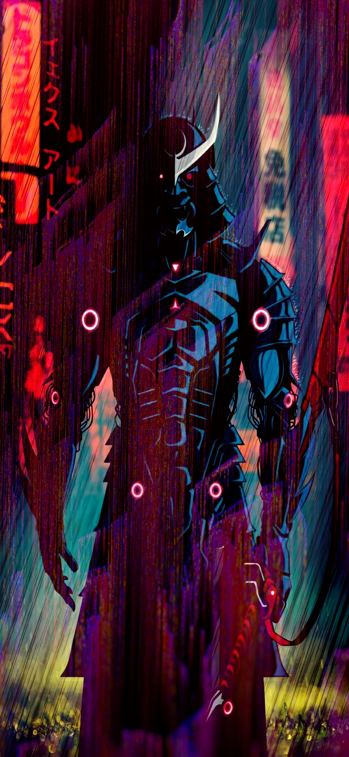 Обои арт, Самурай, художественная краска, пурпур, розовый, фото, заставка