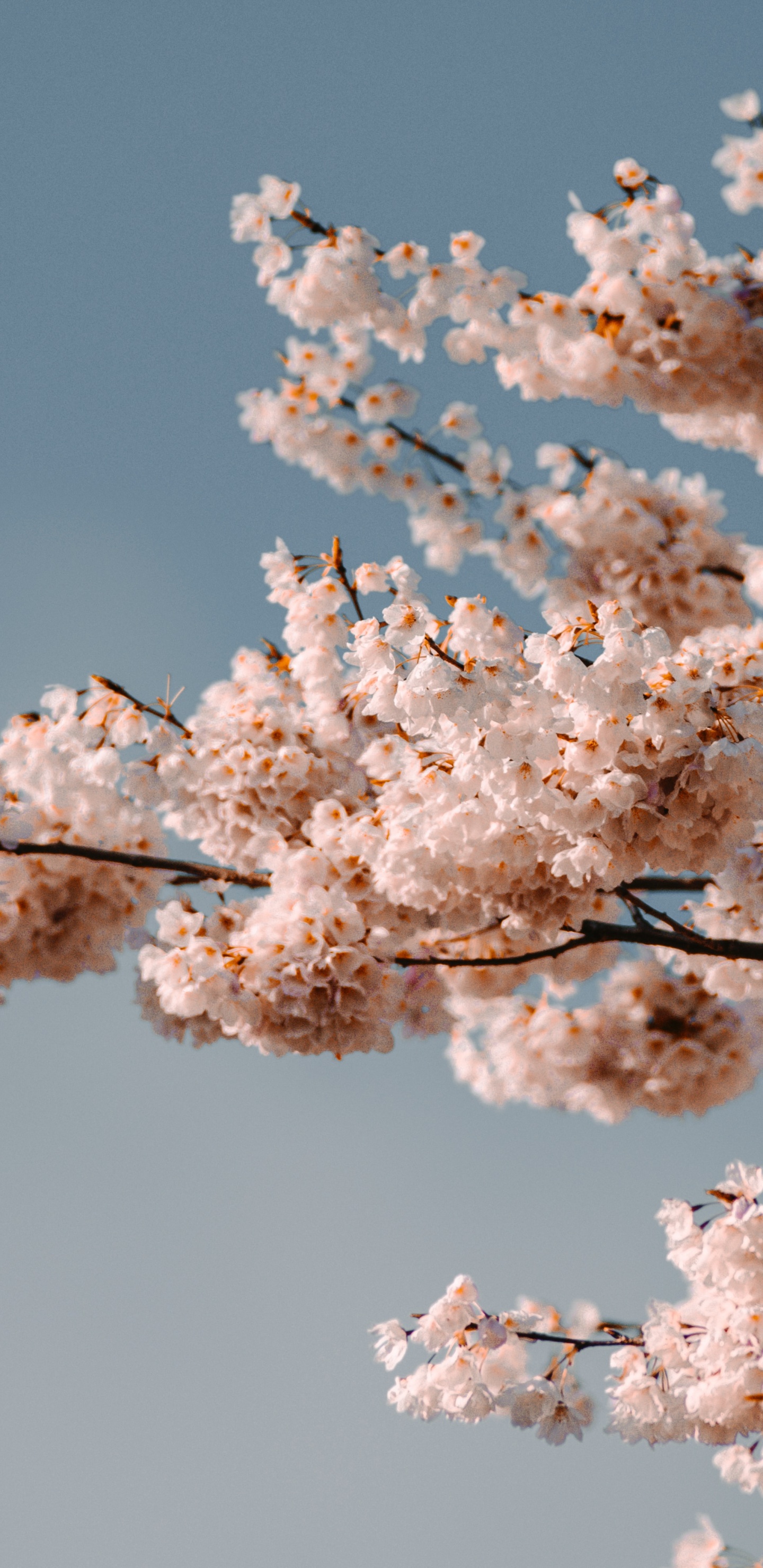 Обои цветок, цветение вишни, синий, розовый, белые для Samsung Galaxy S8/S8+/S9/S9+/Note 8/Note 9 QHD, заставка, 1440x2960 картинка