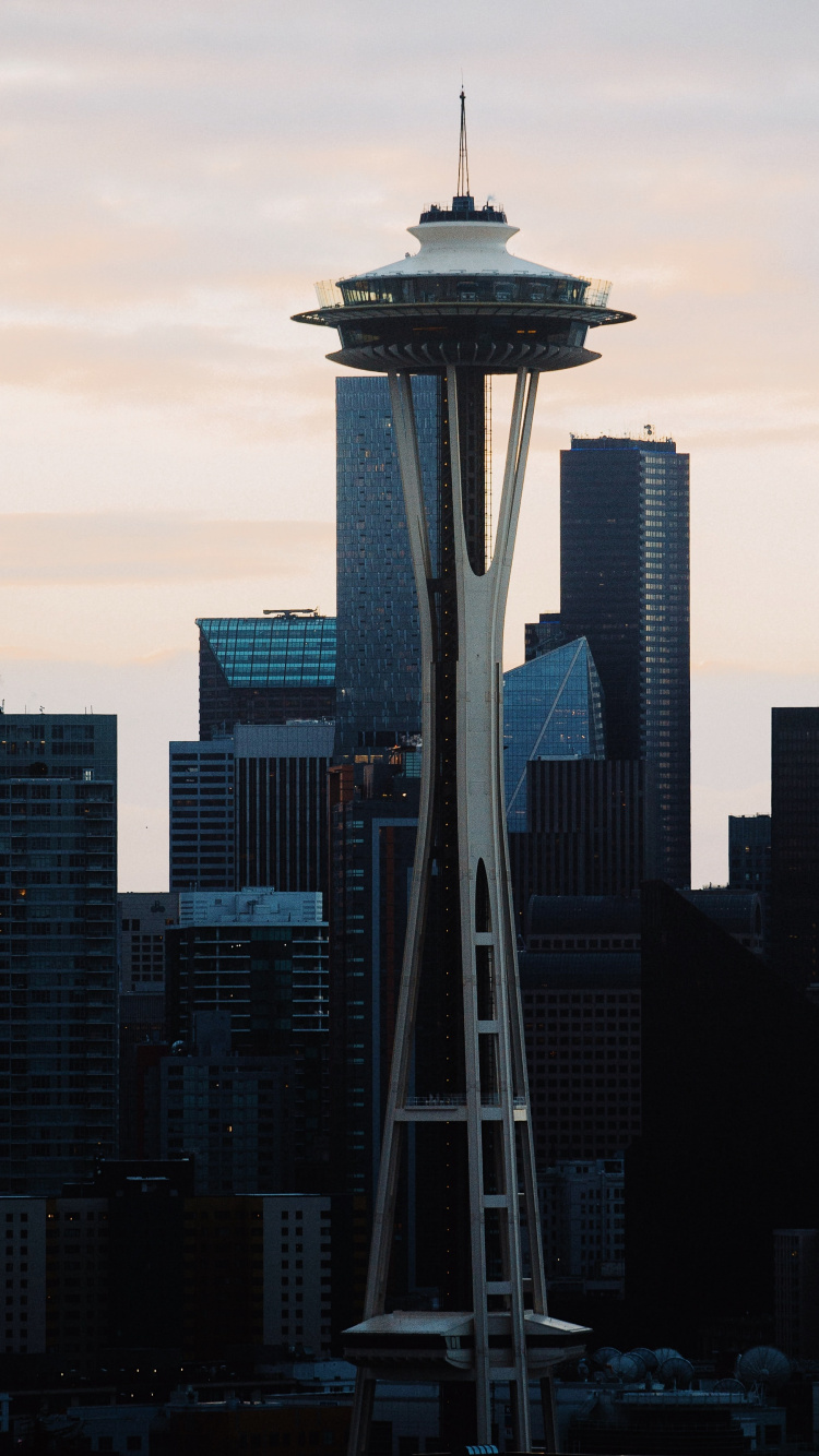 Обои Сиэтл Центр, космическая игла, Башня Сиэтл, Колумбийский центр, Смит Тауэр для iPhone 6, 6S, 7, 8, заставка, 750x1334 картинка