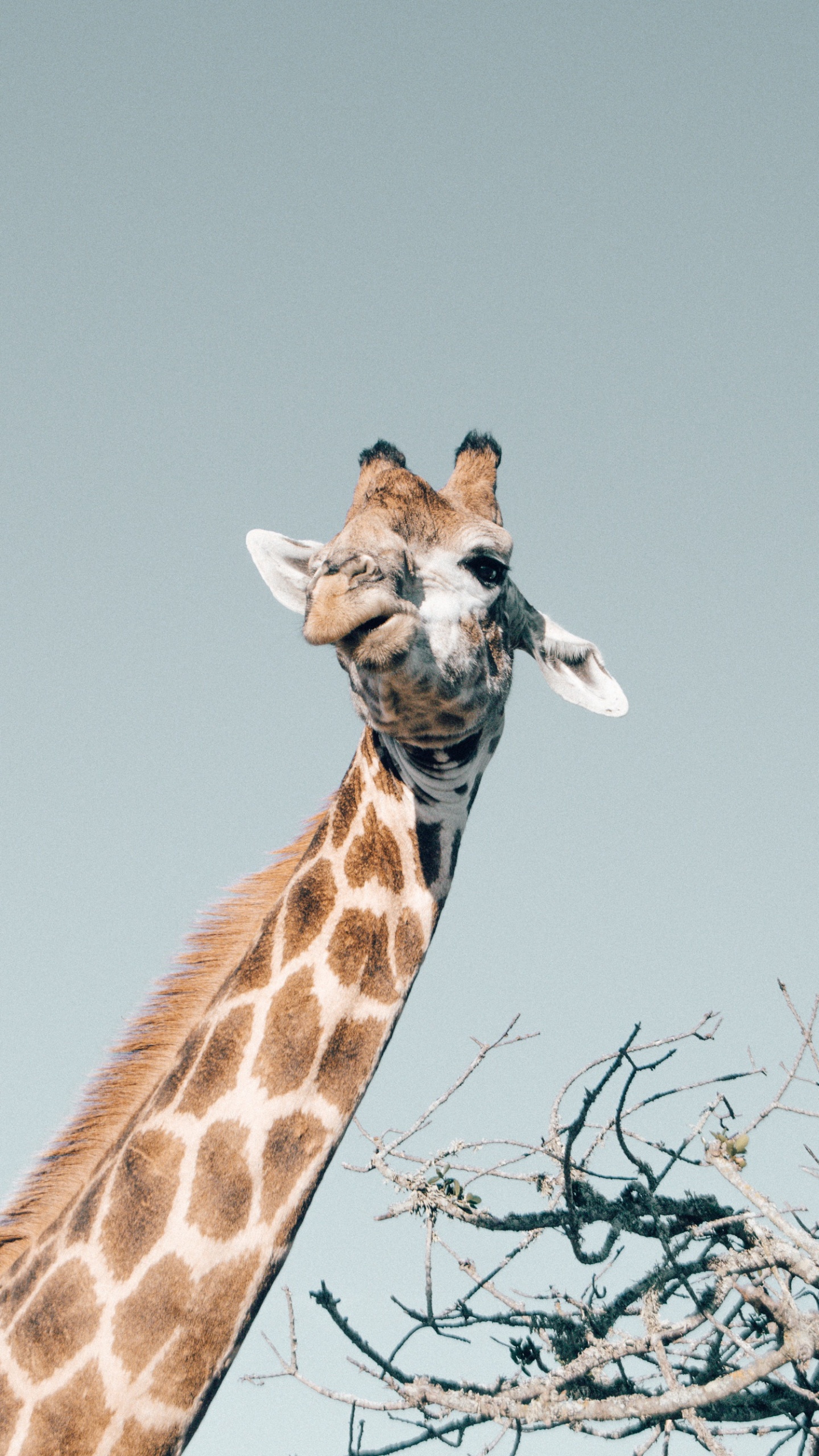 Обои Жираф, жирафовые, растение, шея, олененок для Google Pixel XL, Meizu Pro 7, Nokia 8, HTC U, Huawei P10 Quad HD, заставка, 1440x2560 картинка