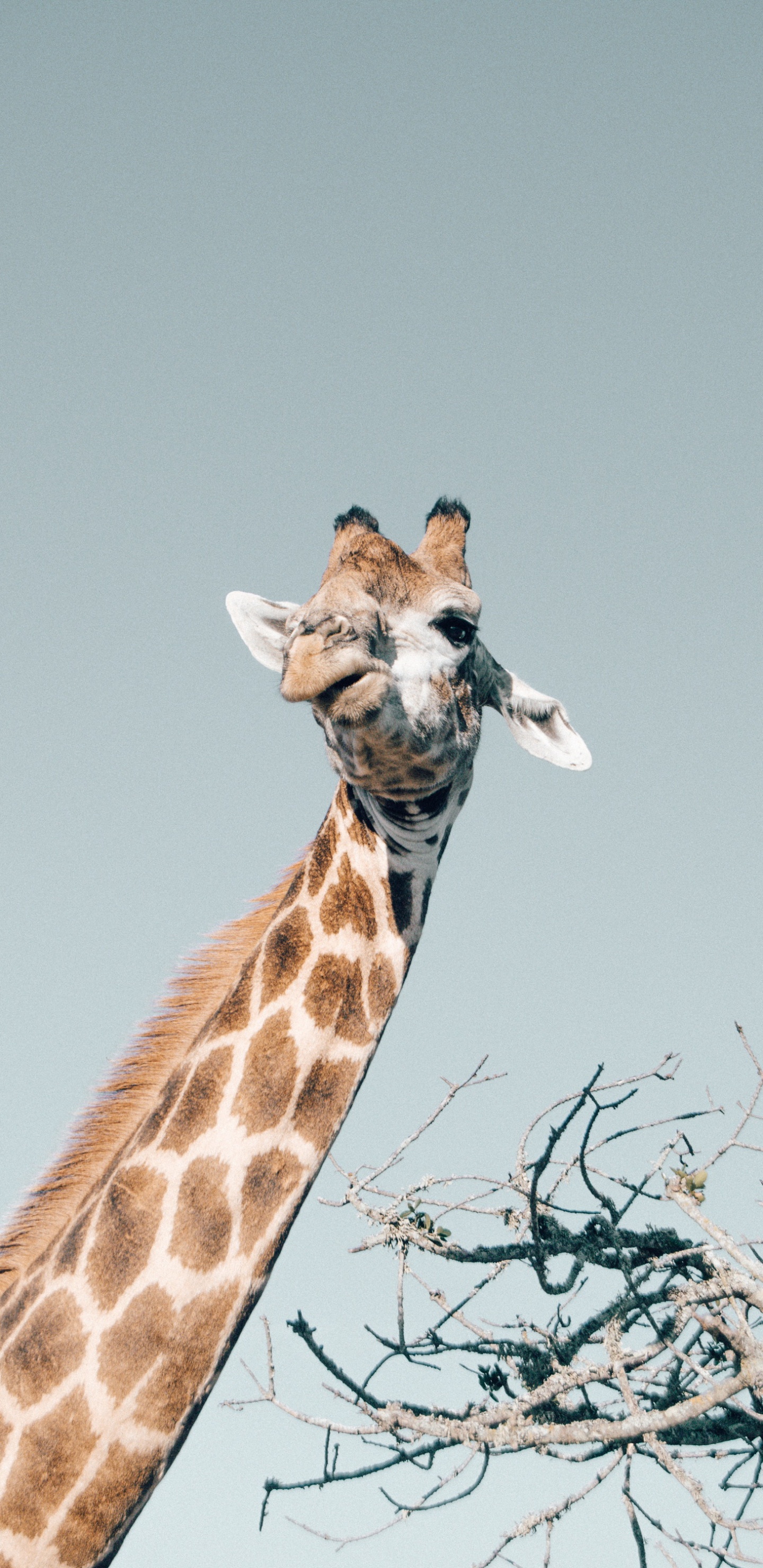 Обои Жираф, жирафовые, растение, шея, олененок для Samsung Galaxy S8/S8+/S9/S9+/Note 8/Note 9 QHD, заставка, 1440x2960 картинка