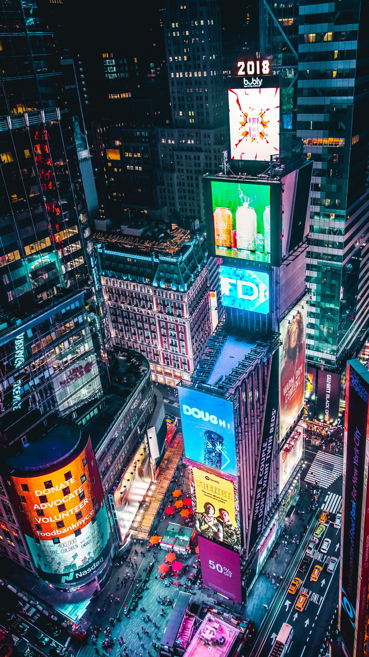 Обои таймсквер, ночь, город, здание, небоскреб для Google Pixel XL, Meizu Pro 7, Nokia 8, HTC U, Huawei P10 Quad HD, заставка, 1440x2560 картинка