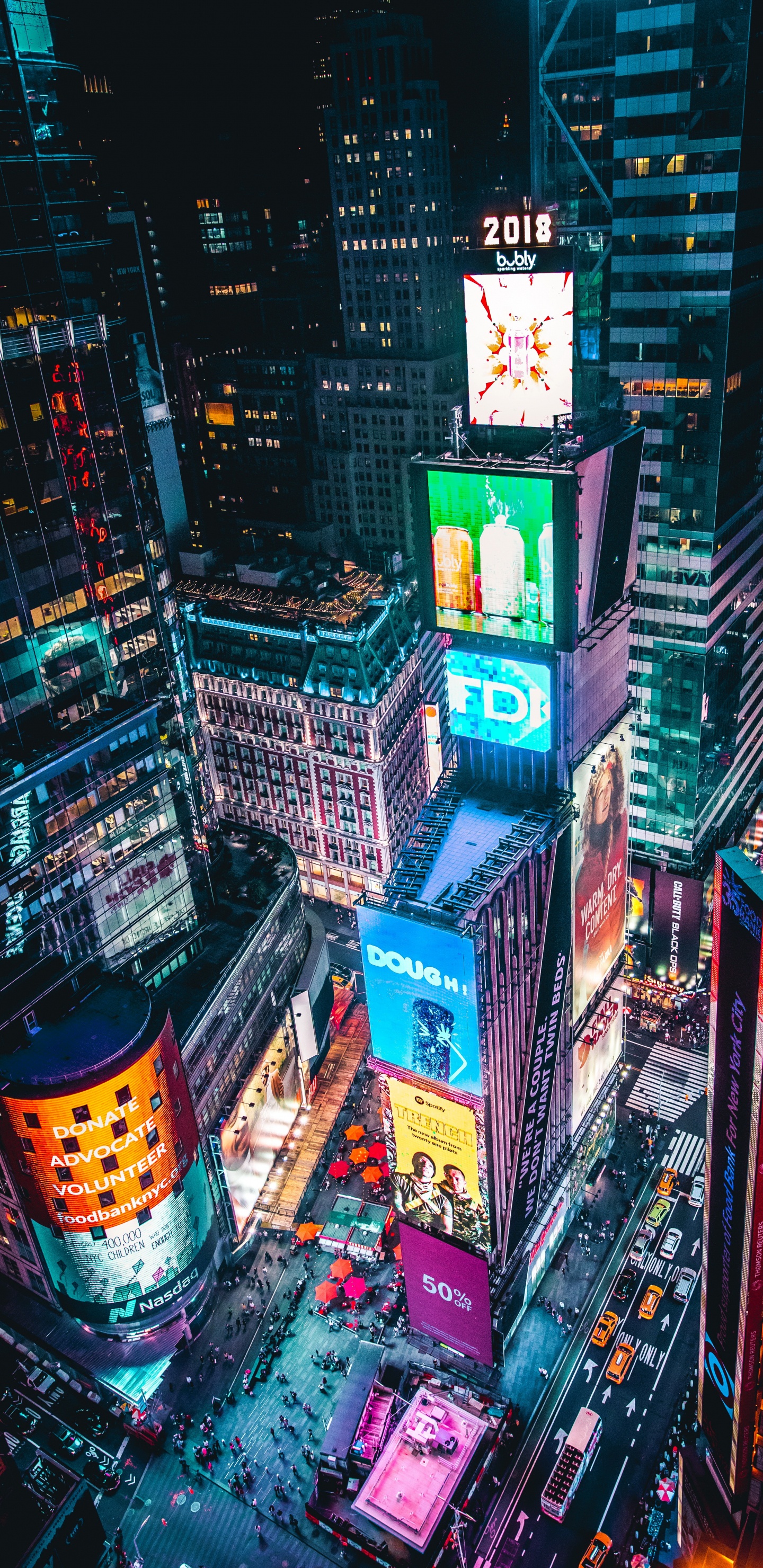 Обои таймсквер, ночь, город, здание, небоскреб для Samsung Galaxy S8/S8+/S9/S9+/Note 8/Note 9 QHD, заставка, 1440x2960 картинка