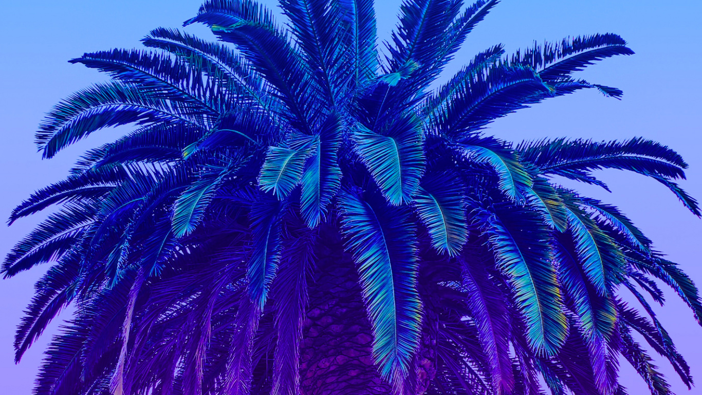 Обои 1366x768 неоновые пальмовые листья, лист, дерево, лазурный, растение, HD ready картинка