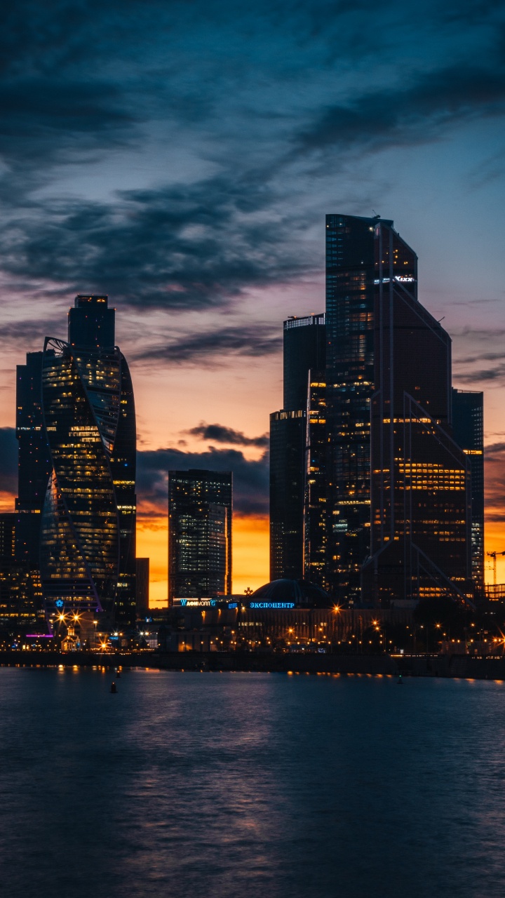 Обои городской пейзаж, небоскреб, вода, облако, здание для HD Samsung Galaxy S3/J3/J4/J5, Meizu M5, Sony Xperia L1/L2, заставка, 720x1280 картинка