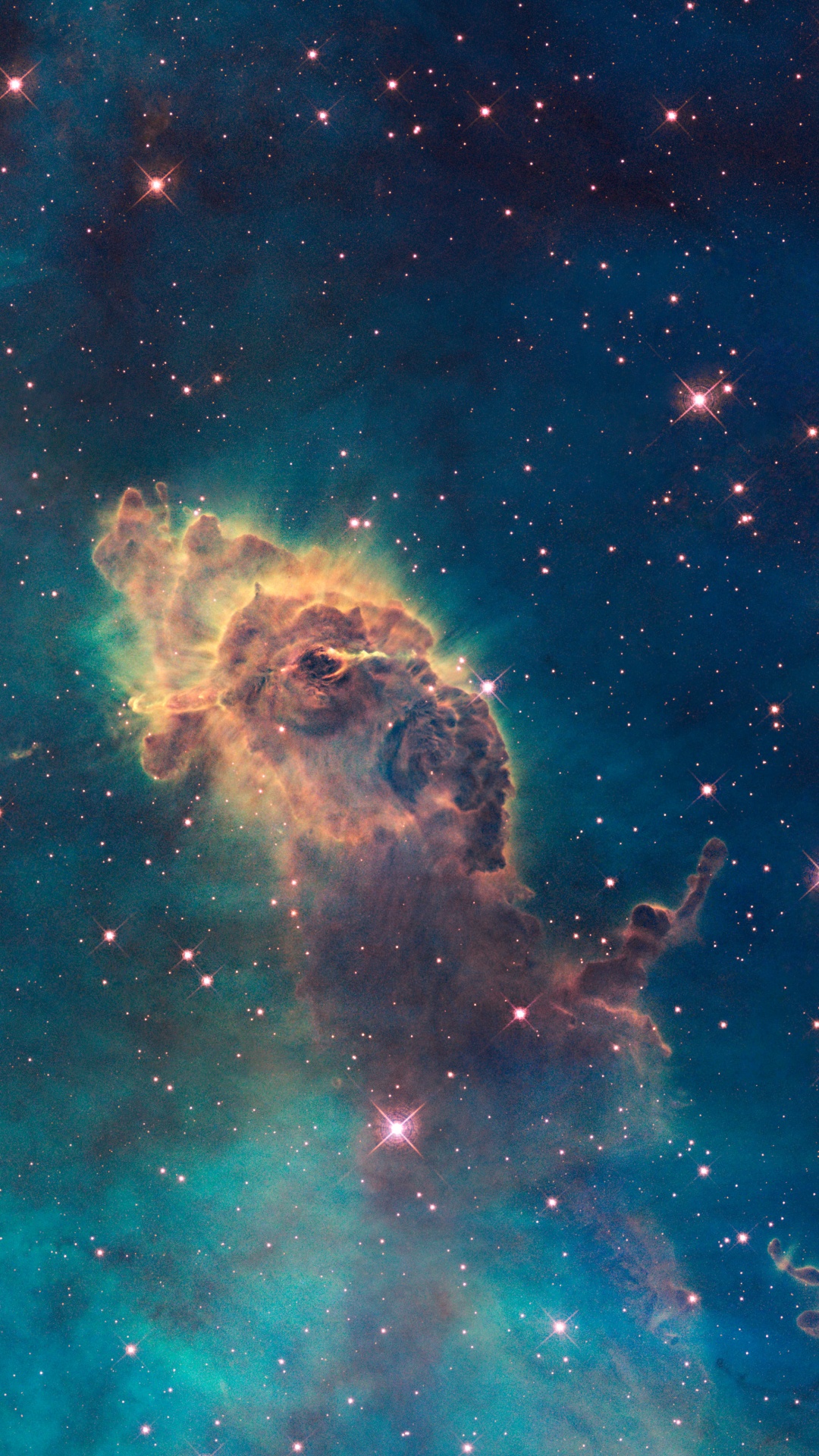 Обои туманность киля, туманность, Галактика, звезда, космический телескоп Хаббл для iPhone 6S+/7+/8+, заставка, 1080x1920 картинка