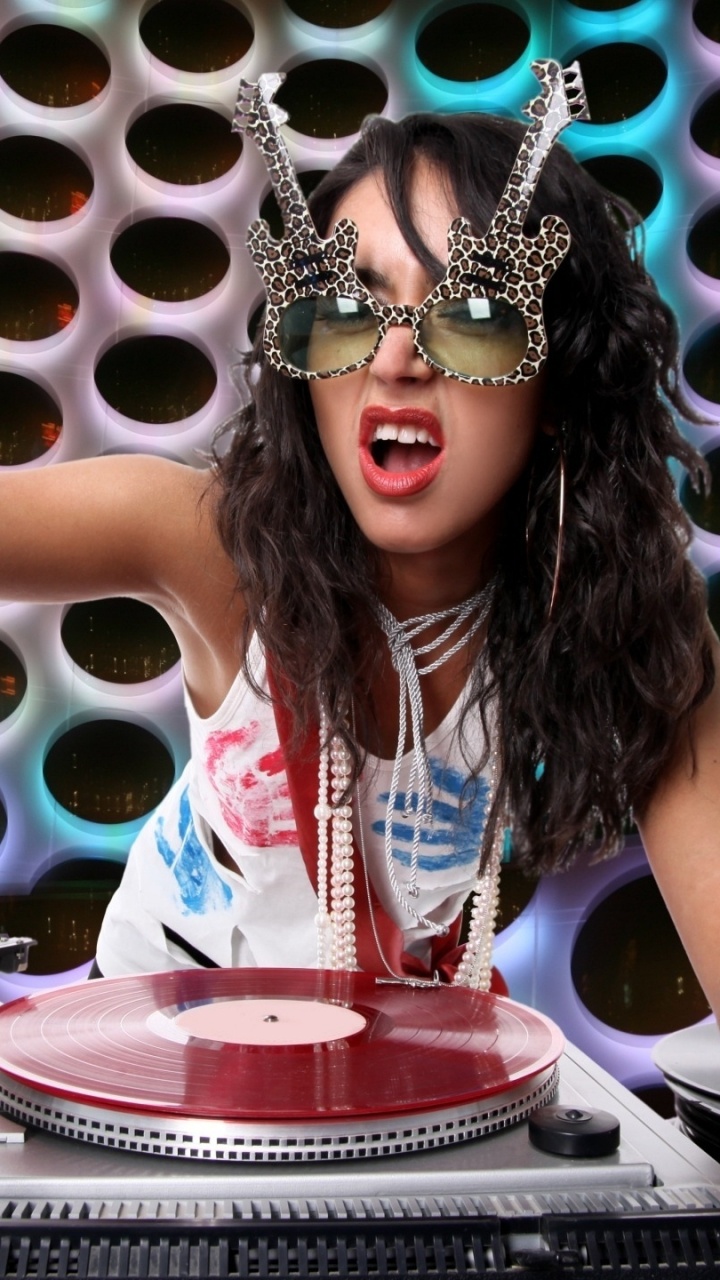Обои граммофонная пластинка, диск жокей, женщина для HD Samsung Galaxy S3/J3/J4/J5, Meizu M5, Sony Xperia L1/L2, заставка, 720x1280 картинка