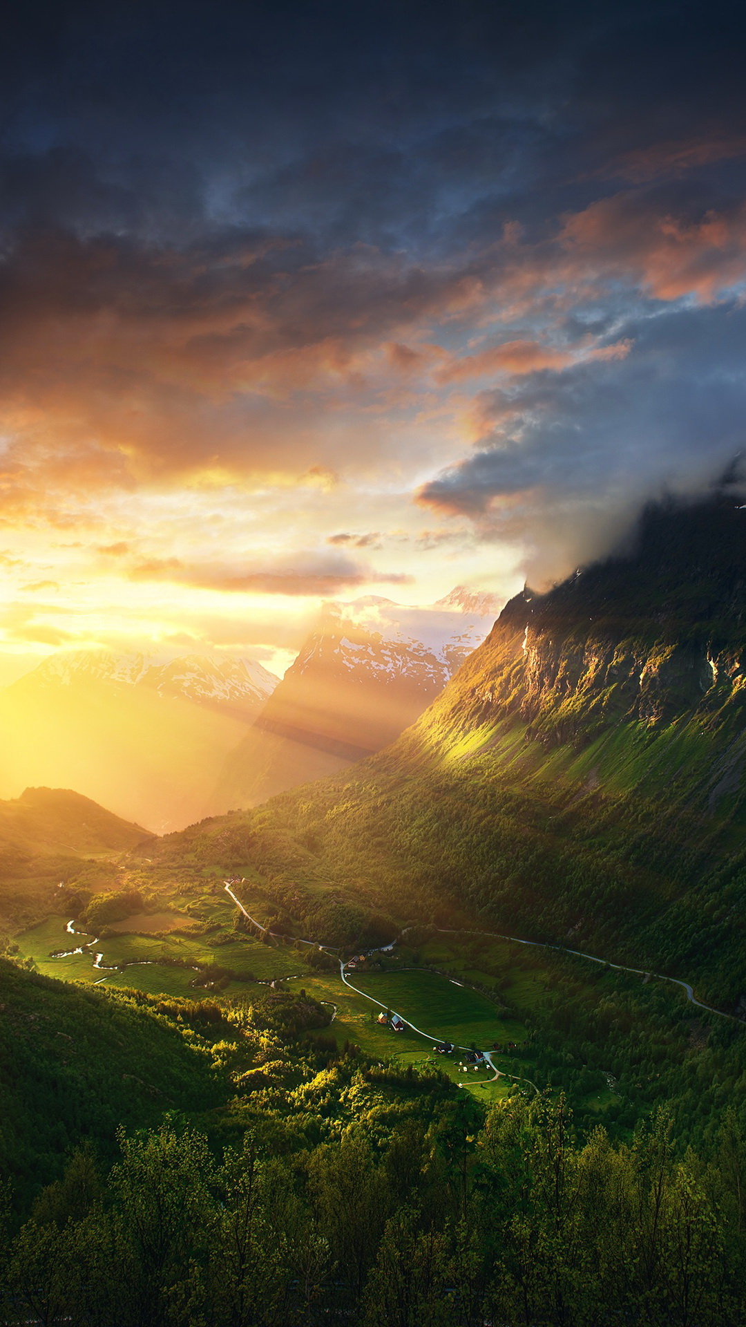 Обои восход солнца норвегия, фьорд, природа, облако, атмосфера на телефон Android, 1080x1920 Full HD картинки