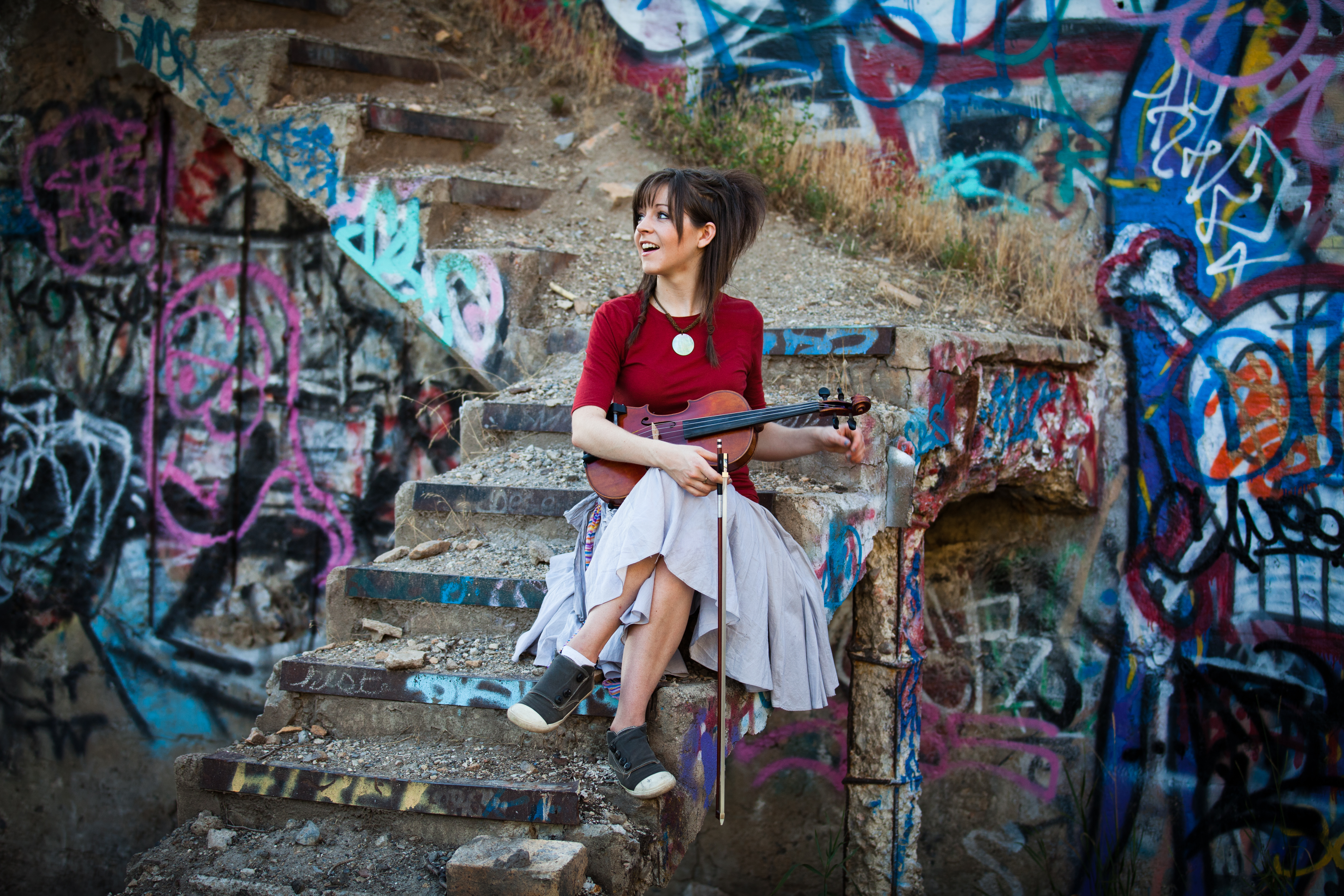 Обои Линдси Стирлинг, скрипка, арт, граффити, уличное искусство, фото, заставка
