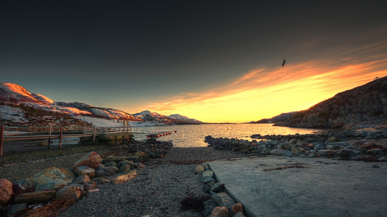 Обои 1280x720 закат, облако, вода, гора, послесвечение, HD, HDV, 720p, 16:9 картинка