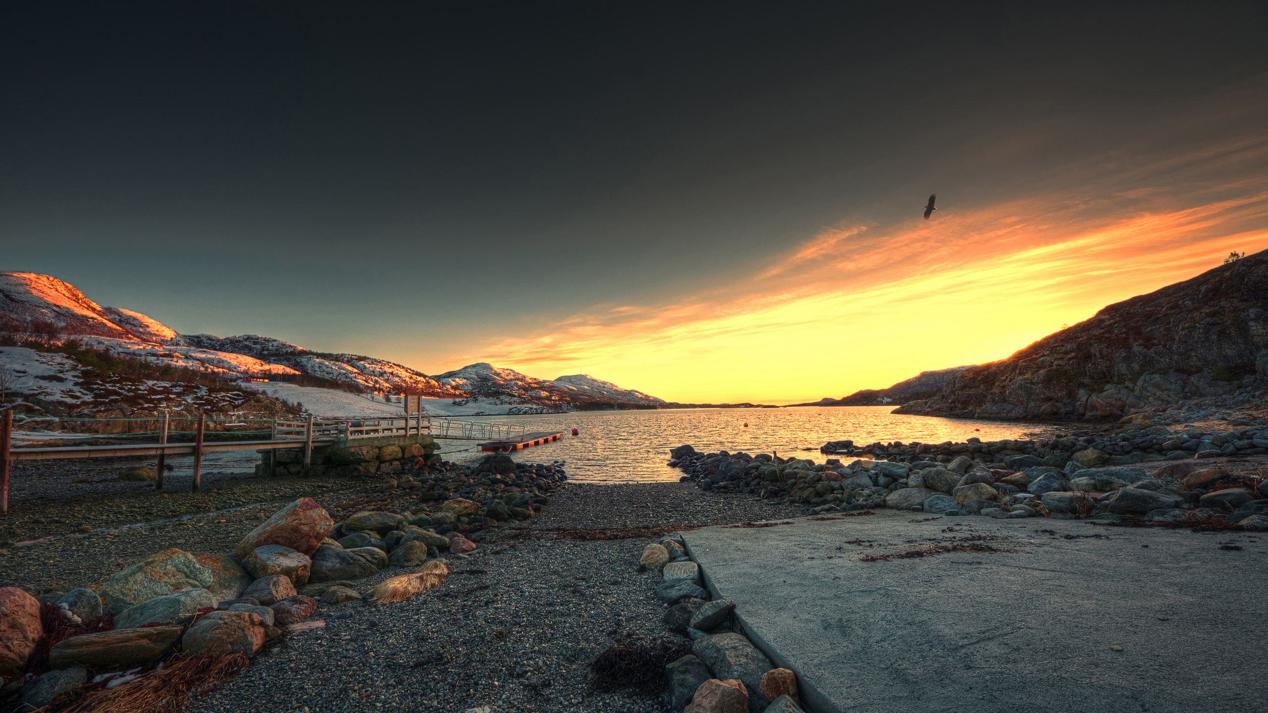 Обои 2560x1440 закат, облако, вода, гора, послесвечение, WQHD, QHD, 16:9 картинка