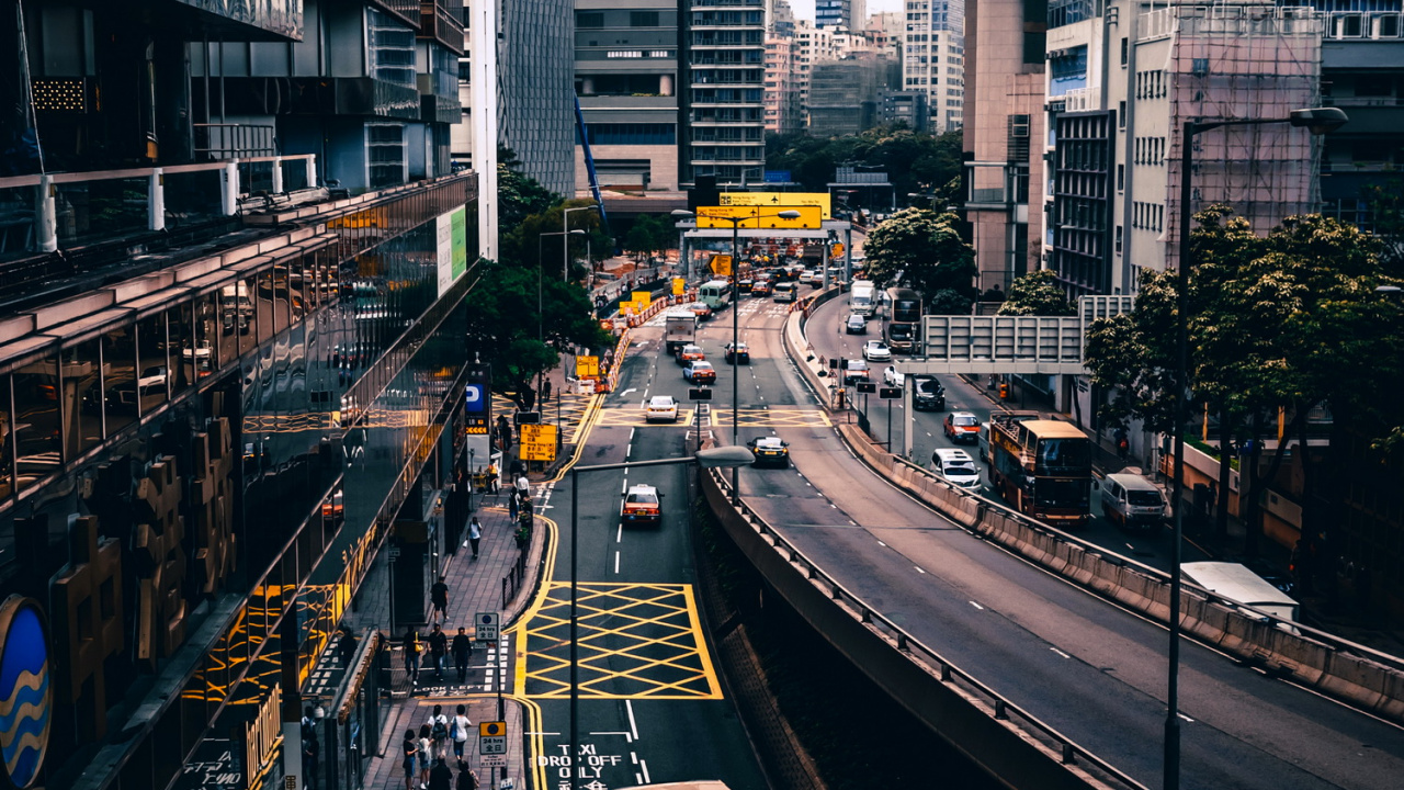 Обои 1280x720 Банк, здание, небоскреб, легковые автомобили, автобус, HD, HDV, 720p, 16:9 картинка