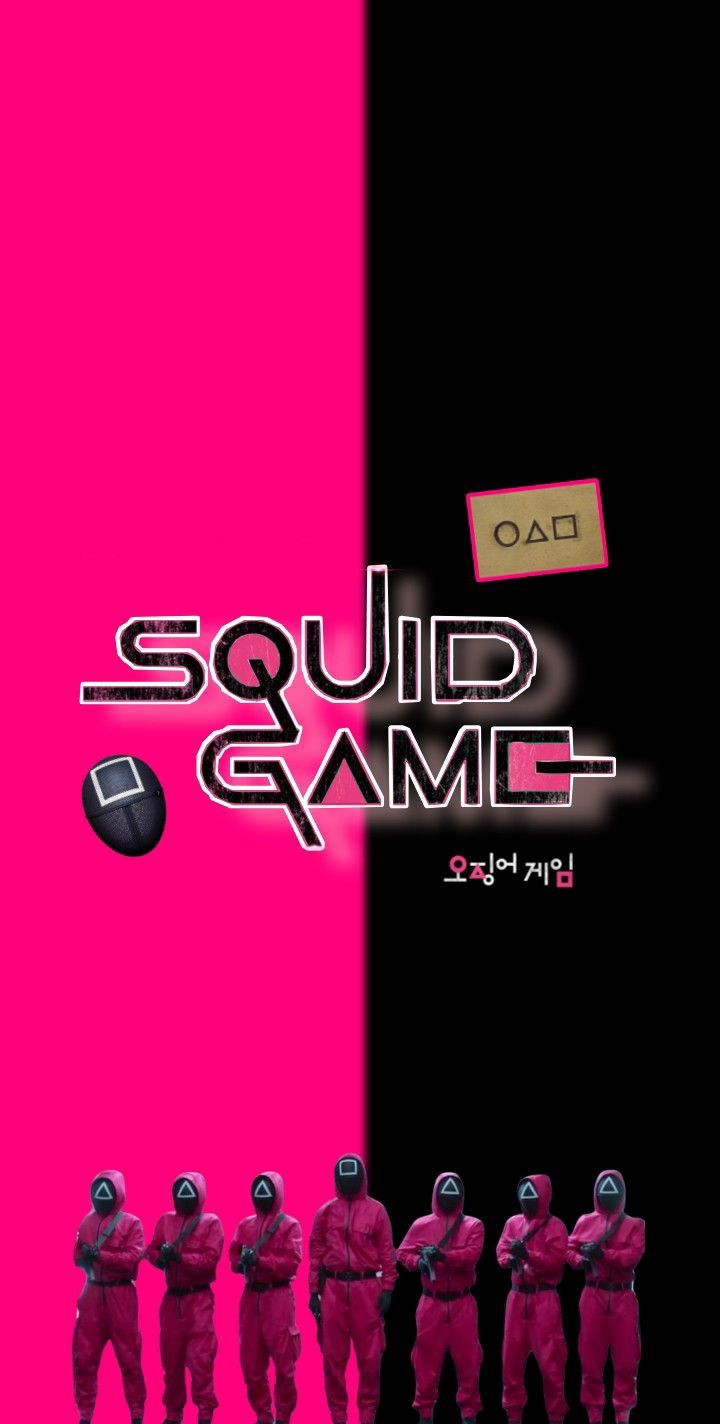 Обои игра в кальмара, постер, розовый, красный цвет, пурпурный цвет, фото, заставка