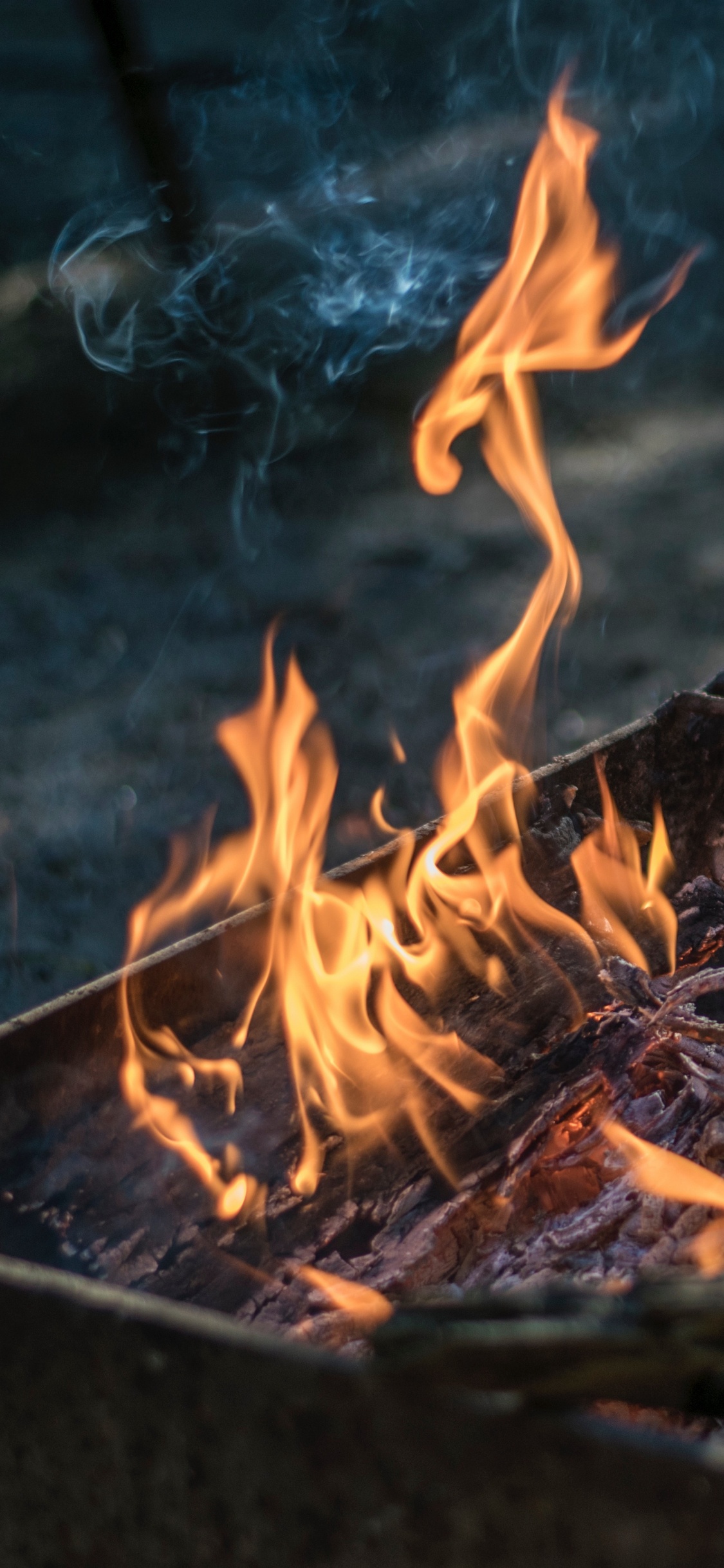 Обои пламя, огонь, барбекю, яблоко, iOS 14 для iPhone X / XS, заставка, 1125x2436 картинка