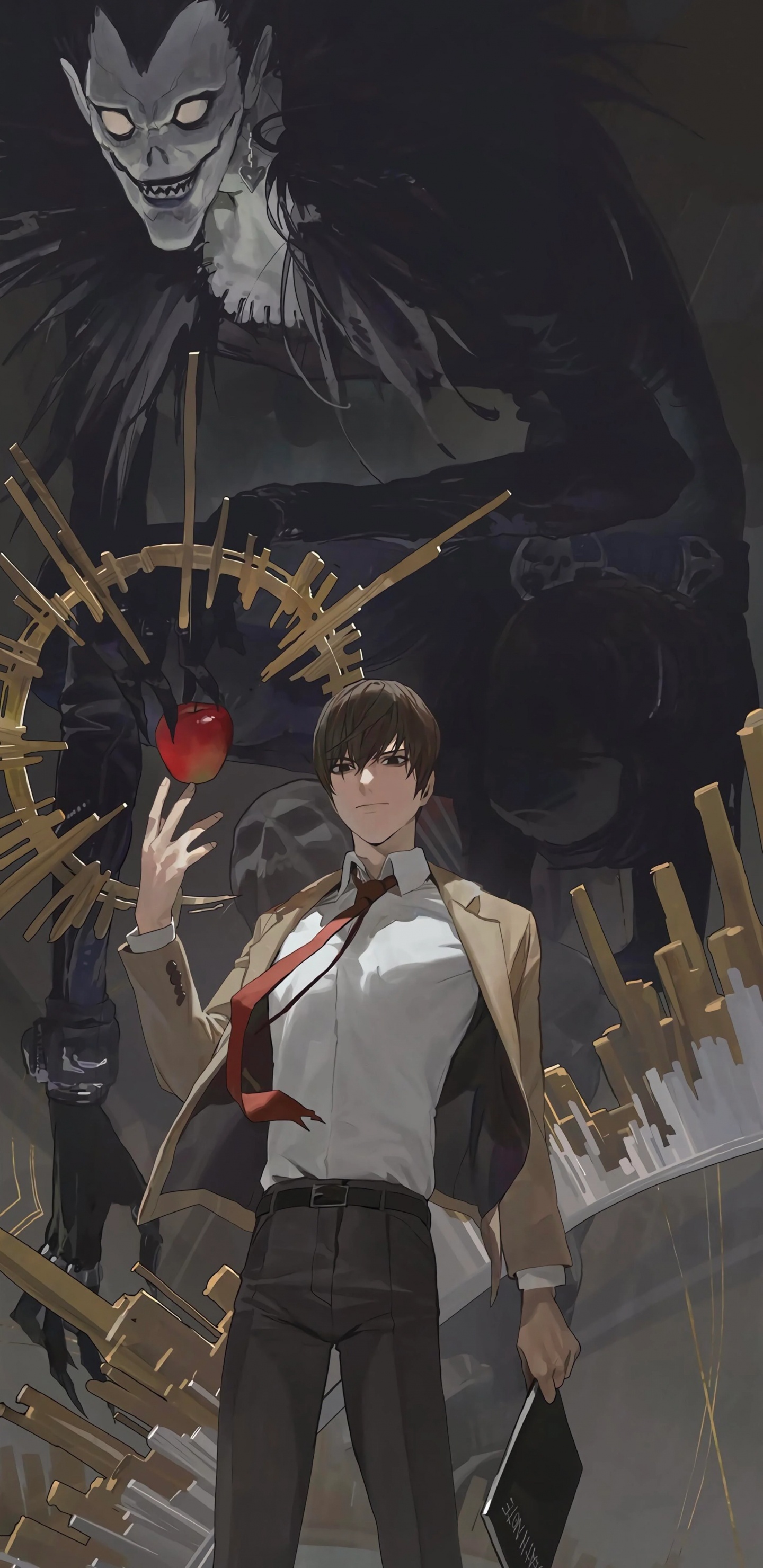 Обои арт, Ягами Лайт, тетрадь смерти, аниме, мультфильм для Samsung Galaxy S8/S8+/S9/S9+/Note 8/Note 9 QHD, заставка, 1440x2960 картинка