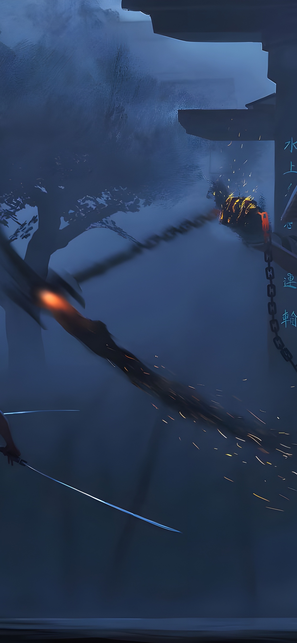Обои Самурай, арт, дерево, темнота, игра-боевик для iPhone XS Max, заставка, 1242x2688 картинка