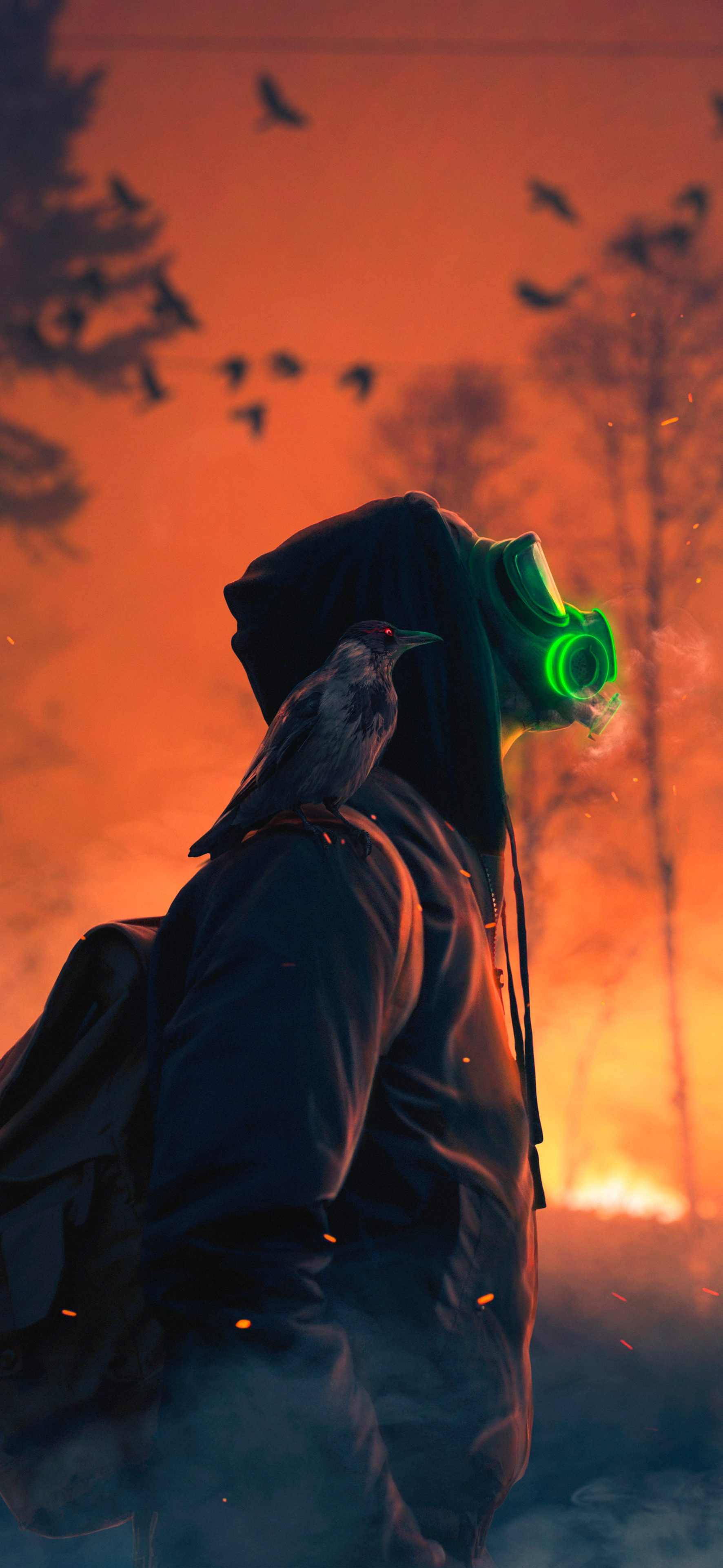 Обои Оранжевый цвет, дерево, клюв, птица, куртка, фото, заставка