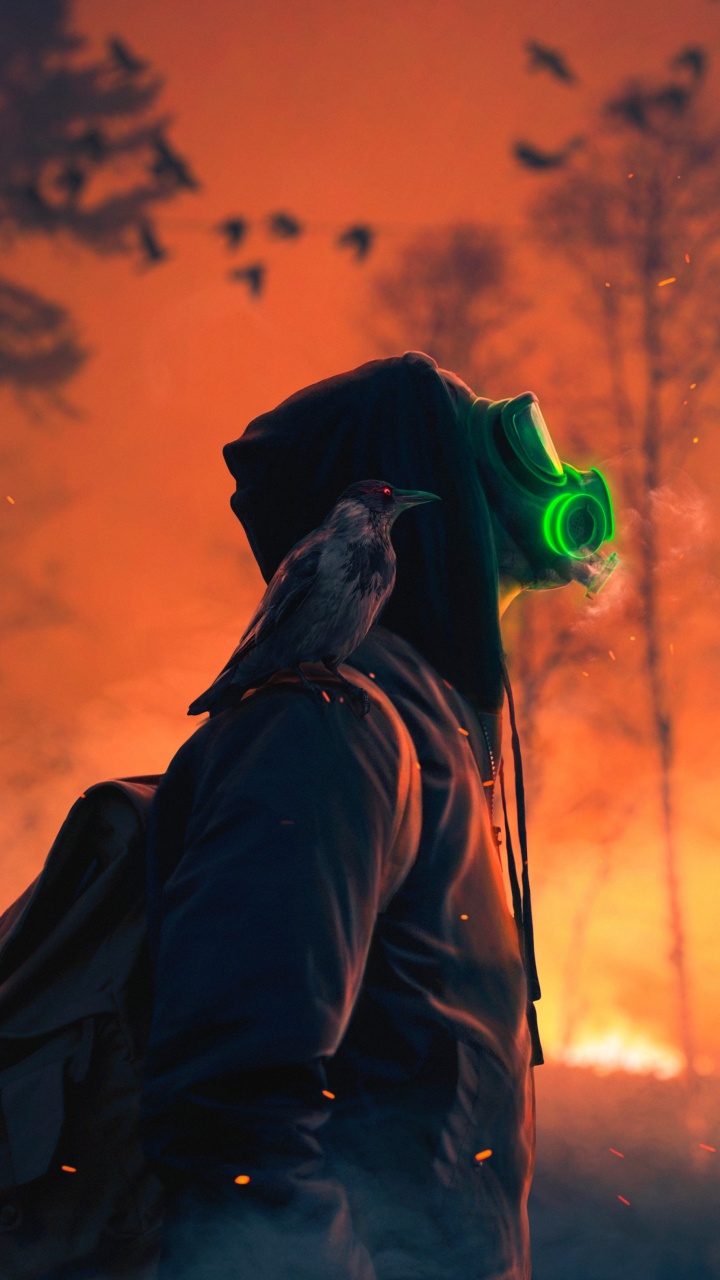 Обои Оранжевый цвет, дерево, клюв, птица, куртка для HD Samsung Galaxy S3/J3/J4/J5, Meizu M5, Sony Xperia L1/L2, заставка, 720x1280 картинка