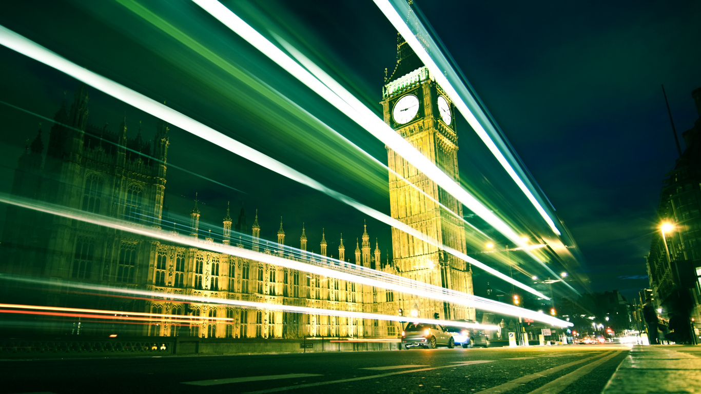 Обои 1366x768 зеленый, свет, ночь, архитектура, городской район, HD ready картинка