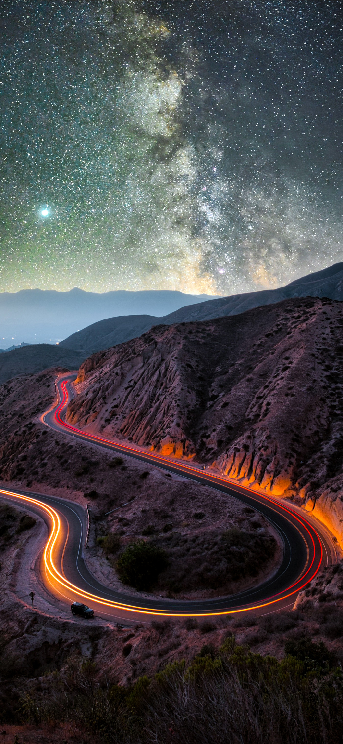 Обои Млечный Путь, постер, атмосфера, гора, свет, фото, заставка
