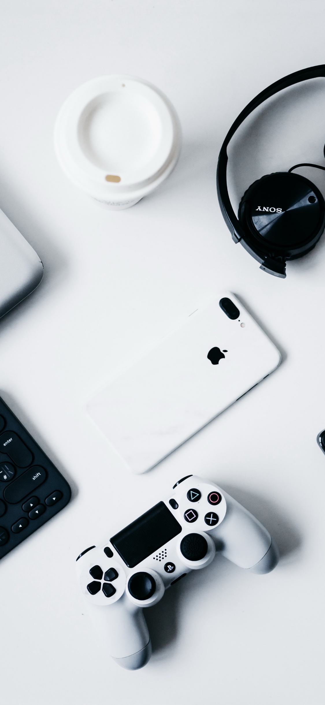 Обои наушники, игровой контроллер, белые, черный, устройство ввода для iPhone X / XS, заставка, 1125x2436 картинка