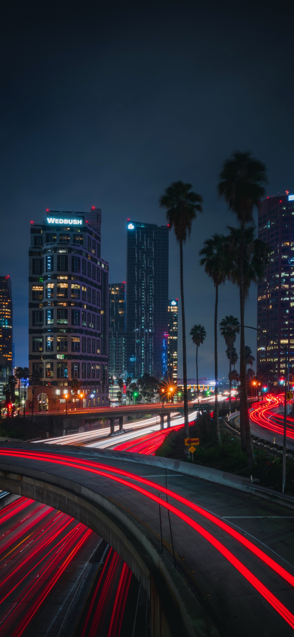 Обои эффект глубины, небоскреб, здание, уличный фонарь, свет для iPhone XS Max, заставка, 1242x2688 картинка