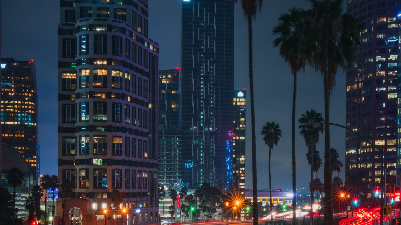 Обои 1280x720 эффект глубины, небоскреб, здание, уличный фонарь, свет, HD, HDV, 720p, 16:9 картинка