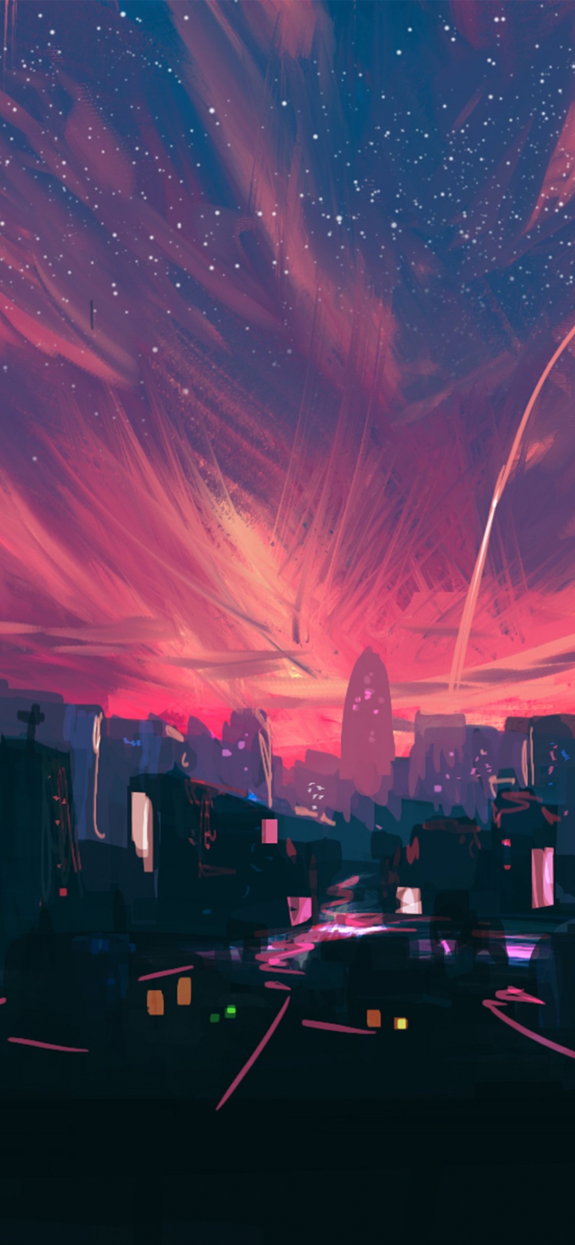 Обои аниме арт, мультик, атмосфера, мир, пурпур для iPhone X / XS, заставка, 1125x2436 картинка