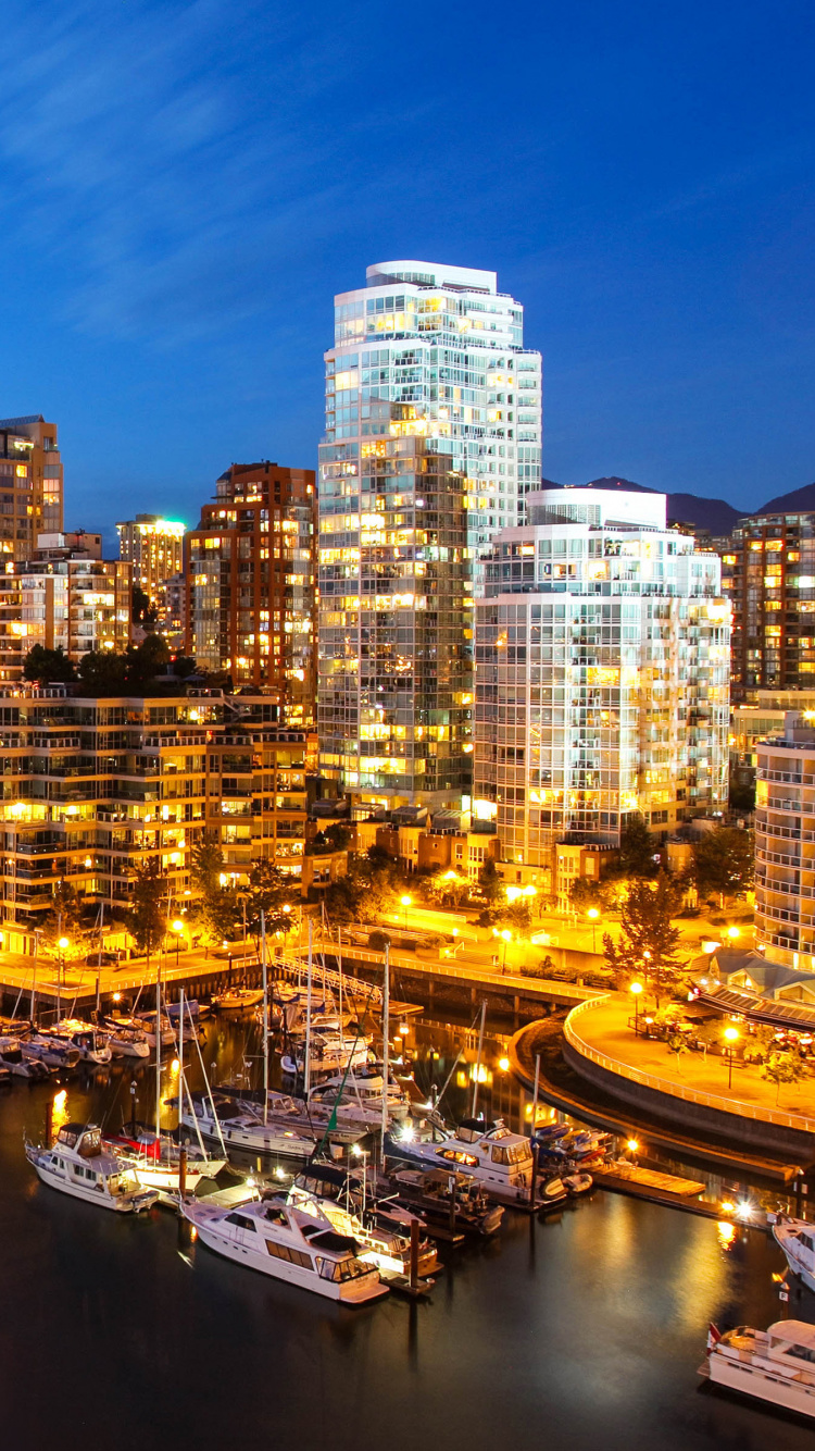 Обои Ванкувер, городской пейзаж, отражение, город, ночь для iPhone 6, 6S, 7, 8, заставка, 750x1334 картинка