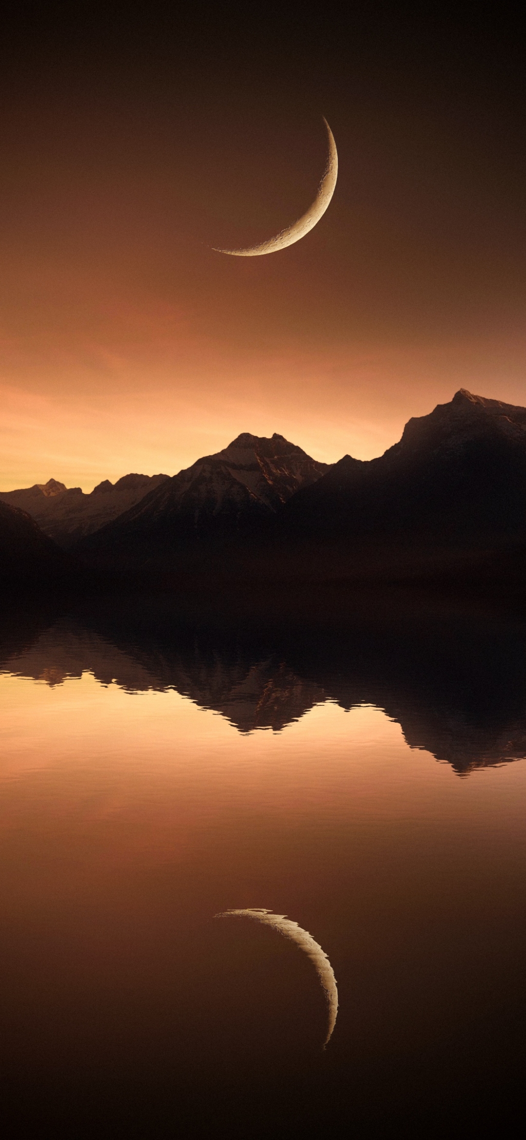 Обои вода, атмосфера, гора, белые, луна, фото, заставка