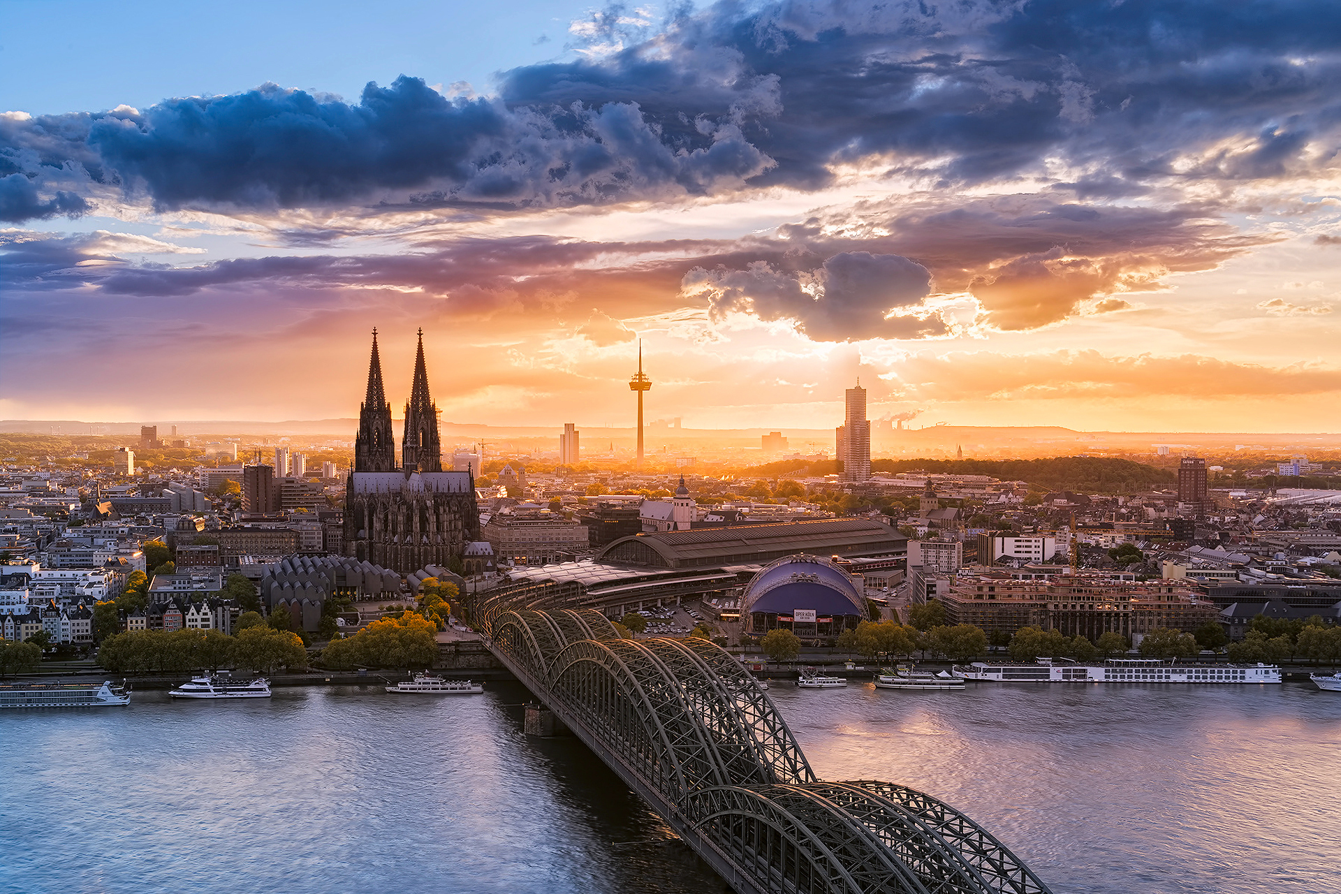 Обои Кельнский Собор, городской пейзаж, ориентир, город, линия горизонта, фото, заставка