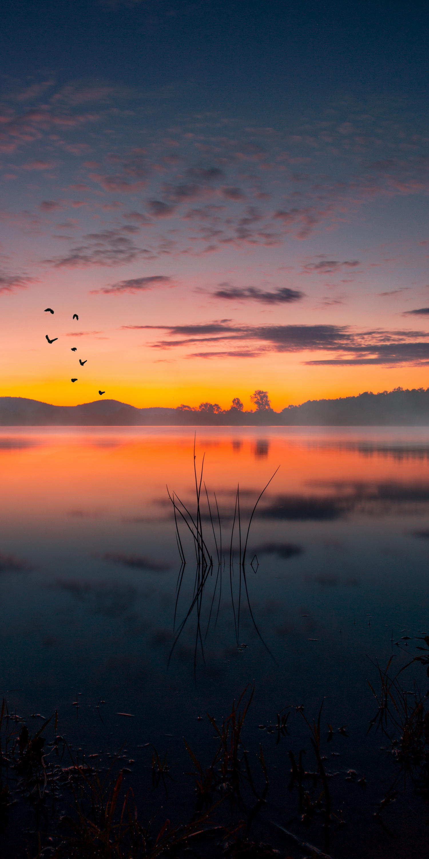 Обои закат, облако, вода, атмосфера, растение, фото, заставка