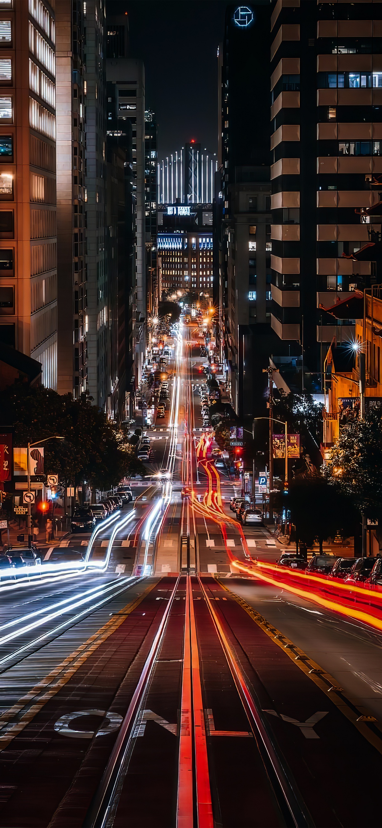 Обои Сан Франциско, здание, небоскреб, свет, автомобильное освещение для iPhone XS Max, заставка, 1242x2688 картинка