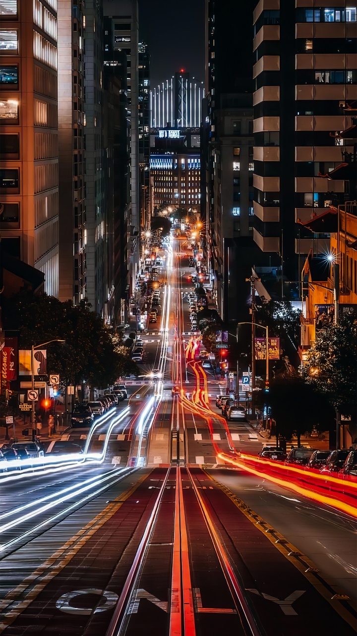 Обои Сан Франциско, здание, небоскреб, свет, автомобильное освещение для HD Samsung Galaxy S3/J3/J4/J5, Meizu M5, Sony Xperia L1/L2, заставка, 720x1280 картинка