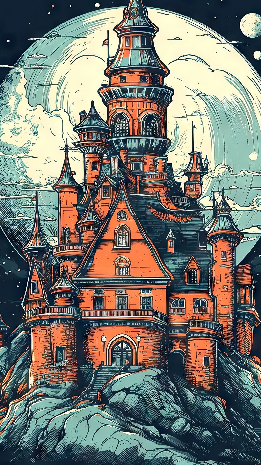 Обои средневековая архитектура, арт, архитектура, визуальное искусство, рисование для iPhone 6S+/7+/8+, заставка, 1080x1920 картинка