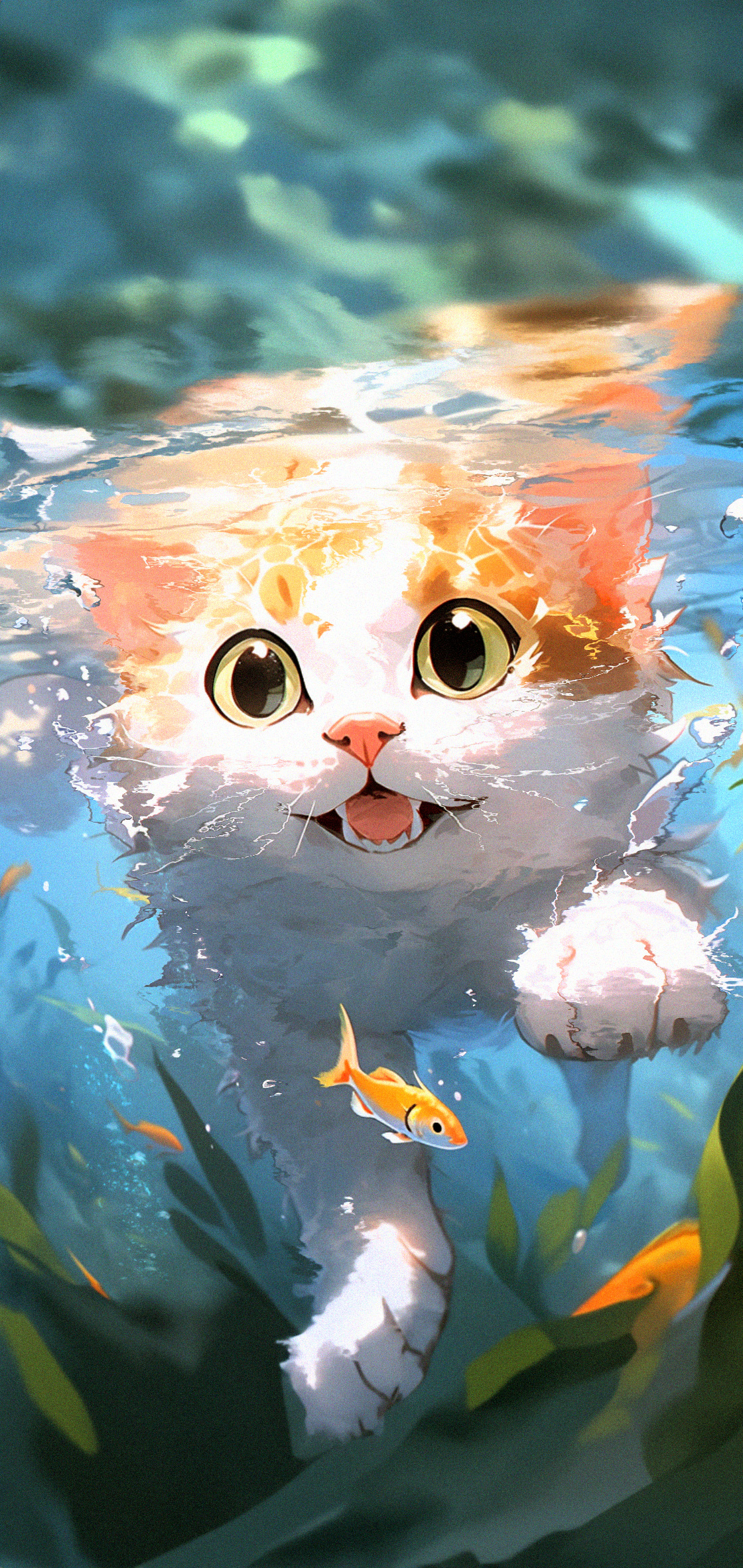 Обои кот под водой, кот, Аквариум, кошачьих, котенок, фото, заставка
