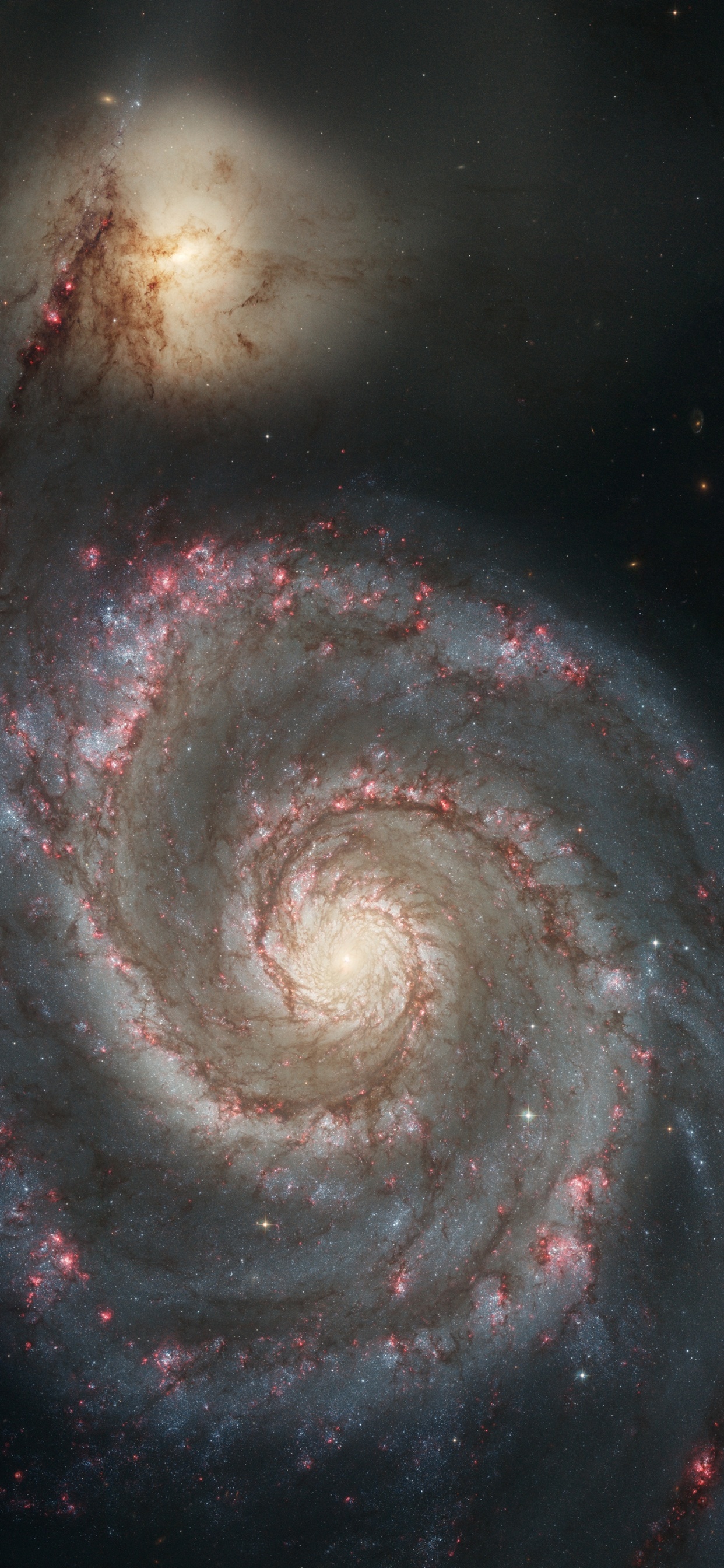 Обои м51 хаббл, Галактика, Галактика Водоворот, Астрономия, спиральная Галактика для iPhone XS Max, заставка, 1242x2688 картинка