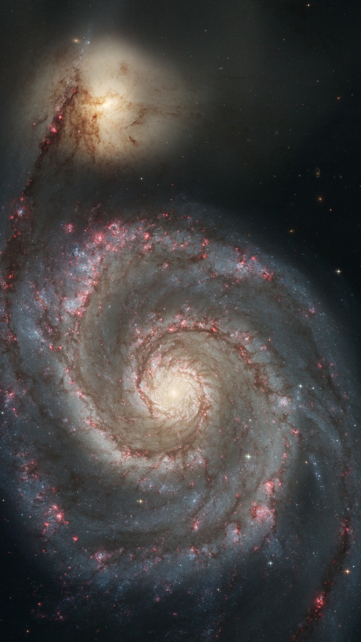 Обои м51 хаббл, Галактика, Галактика Водоворот, Астрономия, спиральная Галактика для HD Samsung Galaxy S3/J3/J4/J5, Meizu M5, Sony Xperia L1/L2, заставка, 720x1280 картинка