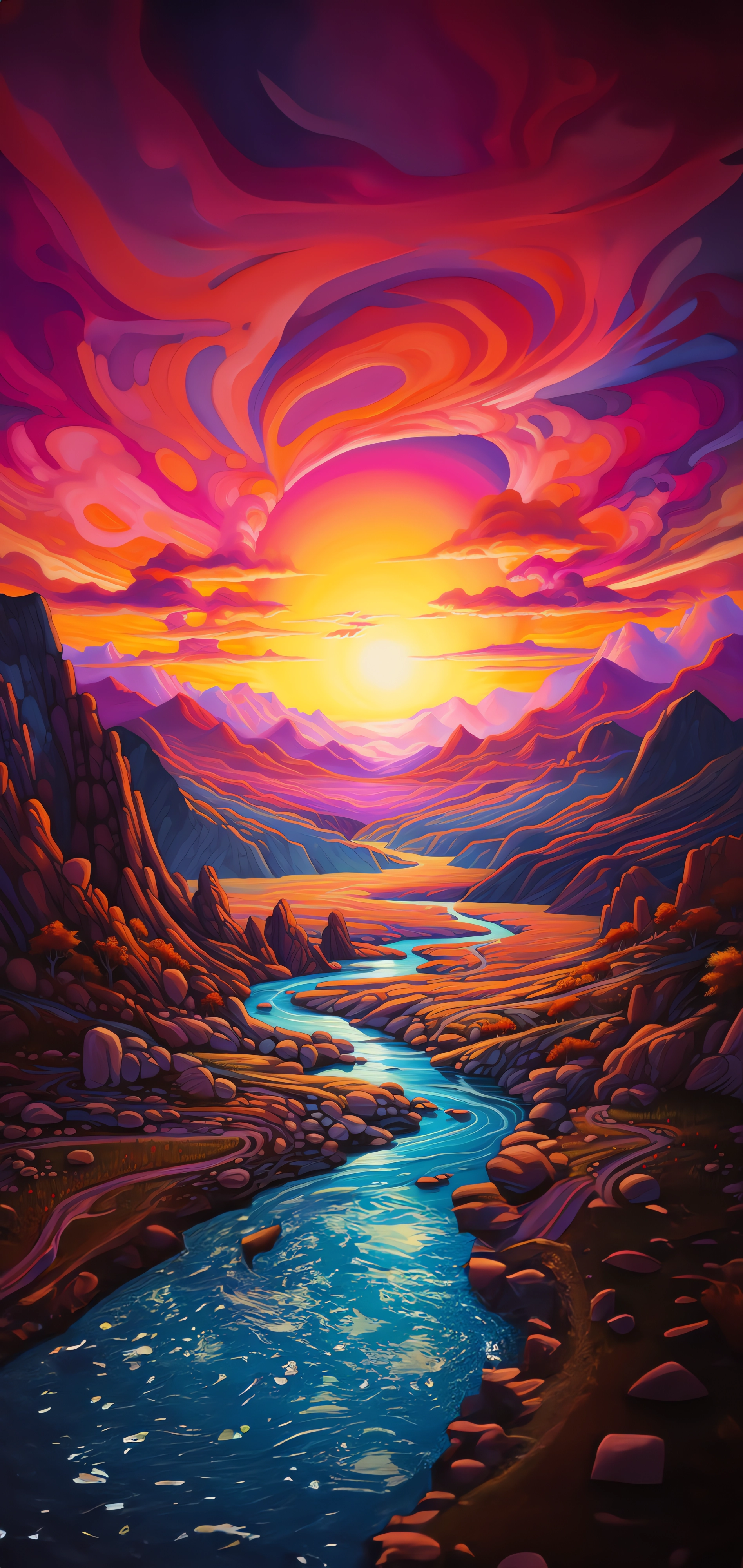 Обои послесвечение, живопись, визуальное искусство, акриловая краска, закат, фото, заставка