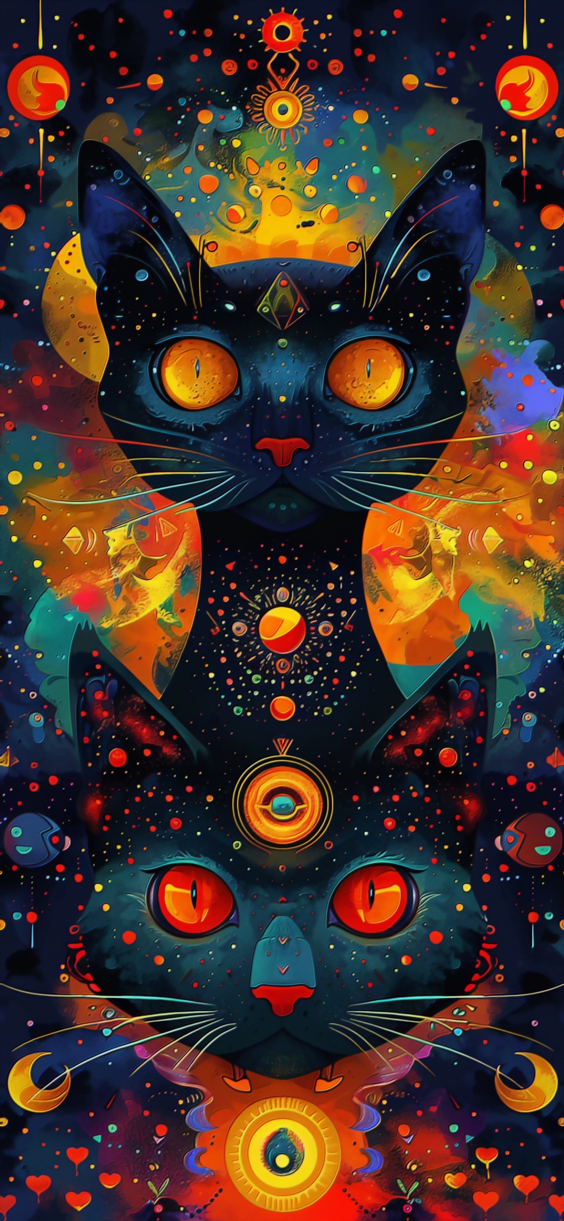 Обои кот, художественная краска, визуальное искусство, арт, рисование для iPhone X / XS, заставка, 1125x2436 картинка